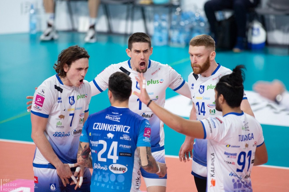 Szkoda, że także przez pandemiÄ™ koronawirusa, tego wyczynu nie mogli w SuwaÅ‚ki Arenie oklaskiwać kibice. Do najważniejszego, jak dotÄ…d, meczu sezonu gospodarze przystÄ…pili należycie zmotywowani i skoncentrowani. Dobrze przyjmowali, dziÄ™ki czemu Josh Tuaniga czÄ™sto uruchamiaÅ‚ na Å›rodku skutecznych tego dnia Andreasa Takvama i Cezarego SapiÅ„skiego. Na skrzydÅ‚ach nie zawodzili Tomas Rousseaux i Marcin WaliÅ„ski, a BartÅ‚omiej Bołądź atakowaÅ‚ i zagrywaÅ‚ w takim stylu, że po raz siódmy zasÅ‚użyÅ‚ na statuetkÄ™ MVP, najwartoÅ›ciowszego gracza meczu.