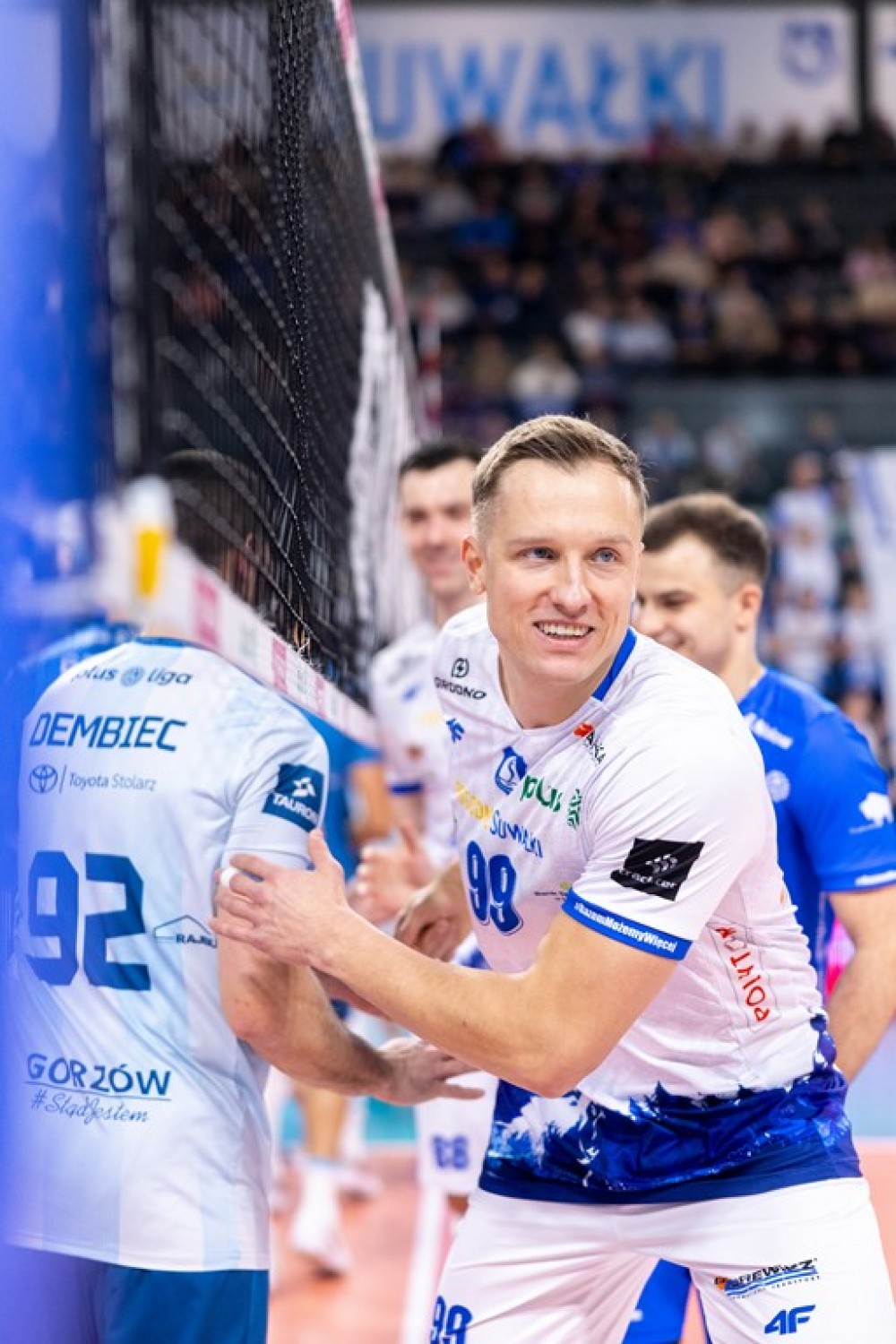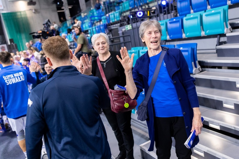 W drugiej partii goÅ›cie jeszcze szybciej wykorzystali chaos i błędy na zagrywce w suwalskiej drużynie, uciekli na 10:7. Zaraz atak przestrzeliÅ‚ Henrique Honorato i jego miejsce już do koÅ„ca zajÄ…Å‚ Antoni Kwasigroch, z bilansem 2 asy i 0 punktow w ataku. Za sprawa bloków Davida Smitha i ataków Bartosza Filipiaka, BiaÅ‚o-Niebiescy wyrównali na 18:18, ale nadzieja prysÅ‚a bÅ‚yskawicznie. Åšrodkiem zaatakowaÅ‚ Patryk Niemiec, 2 asy posÅ‚aÅ‚ Mathis Henno, a Bartosz Filipiak huknÄ…Å‚ po skosie w aut i byÅ‚o już 18:22, a zaraz 20:24. Bartosz Filipiak obroniÅ‚ pierwszego setbola, a David Smith blokami na Chizobie i Kamilu Kwasowskim – kolejne dwa. Kwasowski atakiem po prostej zakoÅ„czyÅ‚ seta na 25:23 i wiadomo już byÅ‚o, że Åšlepsk Malow nie zdobÄ™dzie 3 punktów w tym meczu.