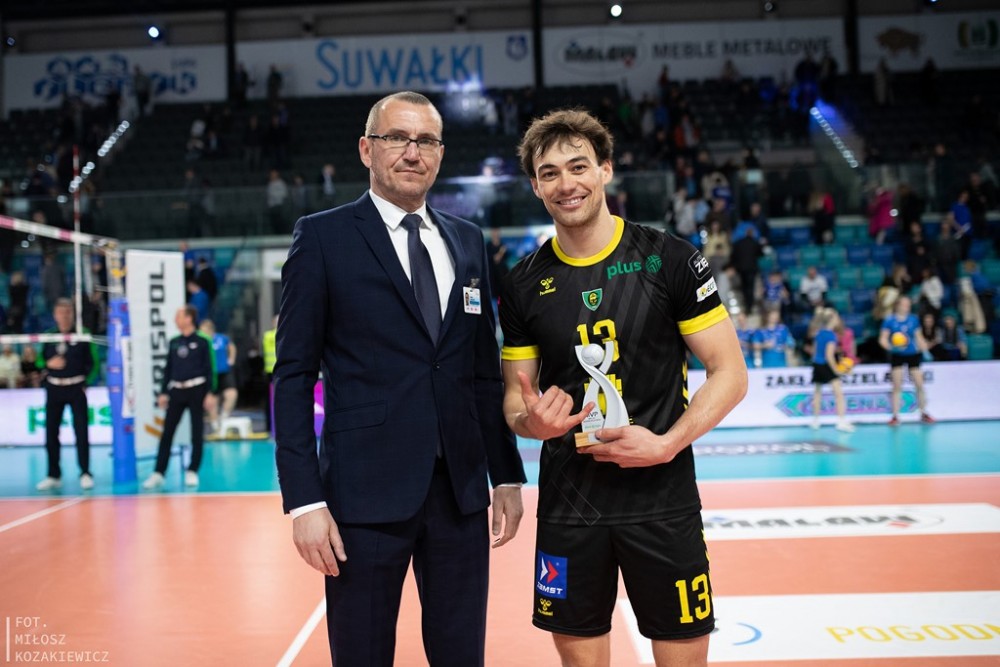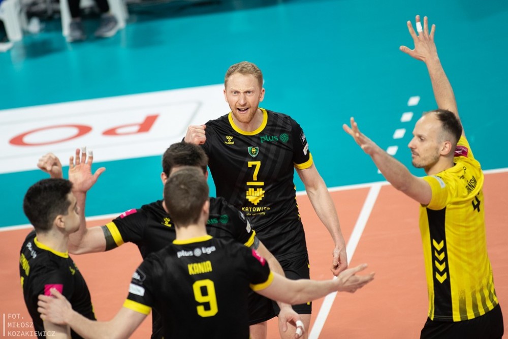 GKS: Jakub Szymański (17), Jakub Jarosz (31), Jakub Lewandowski (8), Marcin Kania (13), Micah Ma'a (7), Gonzalo Quiroga (4) – libero Bartosz Mariański i Dawid Ogórek oraz Damian Domagała, Tomas Rousseaux(11), Kamil Drzazga