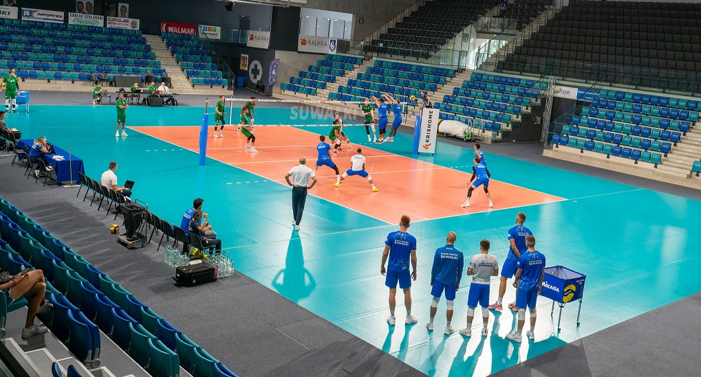 Suwalski zespóÅ‚ rozpoczÄ…Å‚ skÅ‚adem z poprzedniego sezonu, bez pozyskanych tego lata graczy którzy wchodzili w dalszej części spotkania. Pierwszy set dla gospodarzy, w drugim – najbardziej zaciÄ™tym – w koÅ„cówce szalÄ™ na swojÄ… korzyść przechylili goÅ›cie. Kolejne dwie partie to już zdecydowana dominacja BiaÅ‚o-Niebieskich.