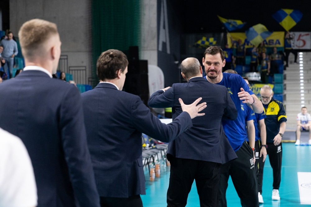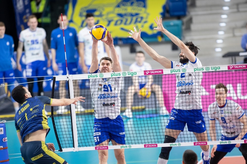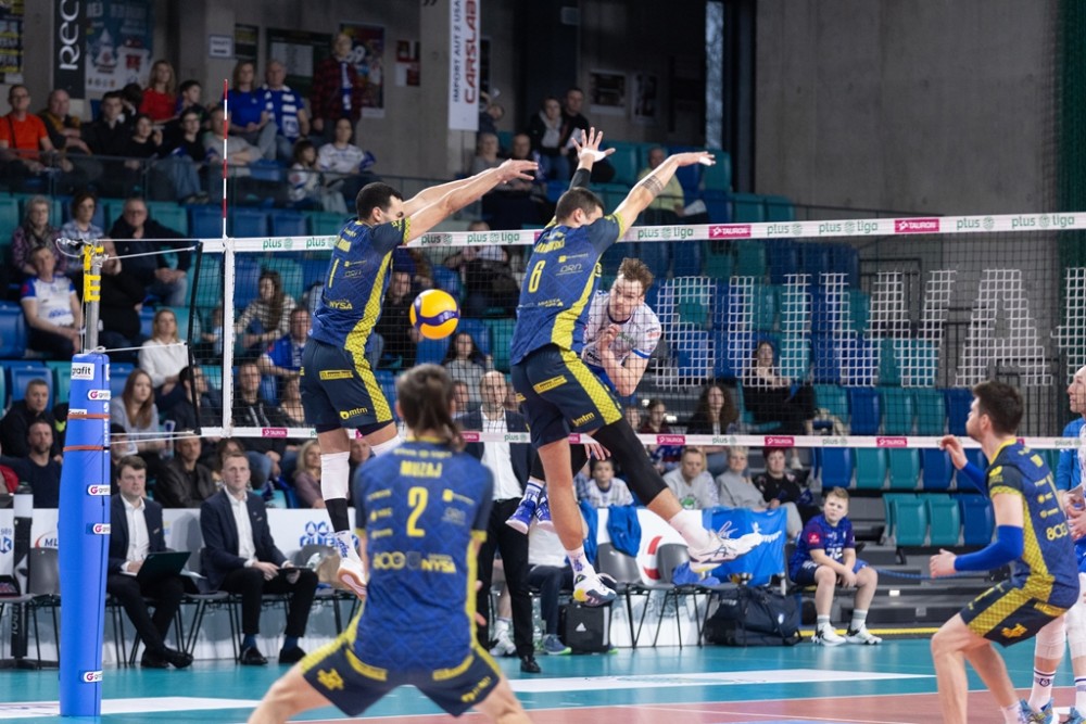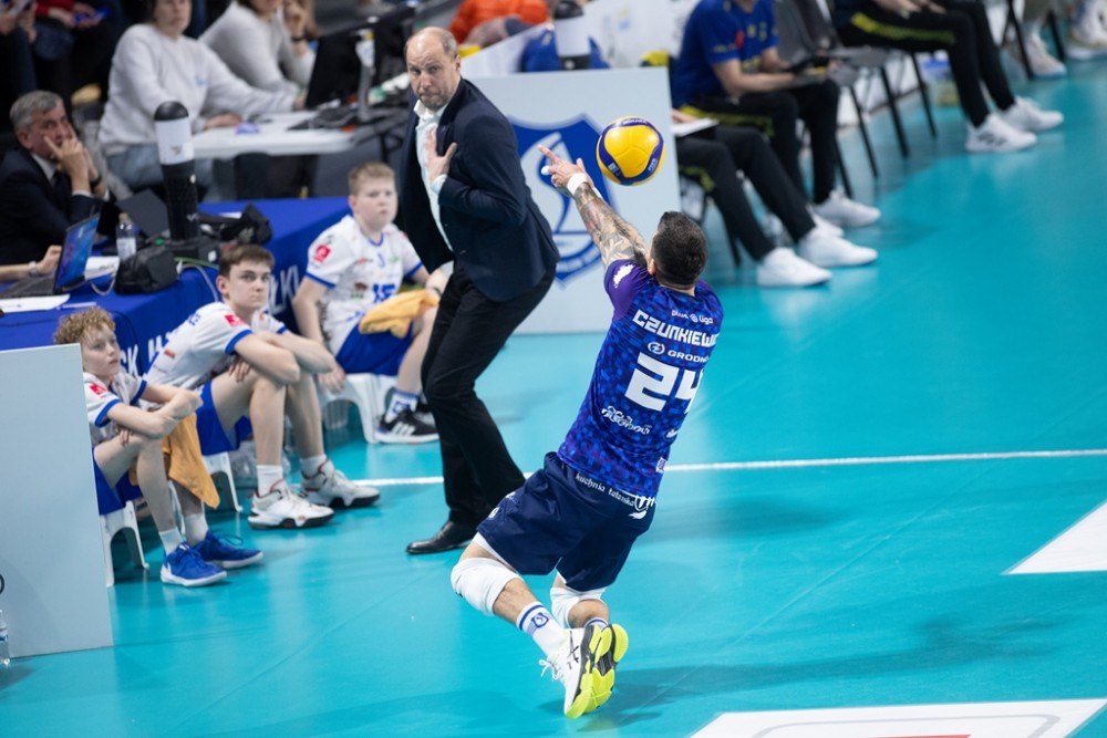 Dominik Kwapisiewicz nie mógÅ‚ skorzystać z kontuzjowanego Arkadiusza Å»akiety, ale ten i tak nie miaÅ‚by szans na grÄ™, bo znakomicie spisywaÅ‚ siÄ™ Bartosz Filipiak, wybrany MVP spotkania. Szkoleniowiec BiaÅ‚o-Niebieskich zaczÄ…Å‚ tym samym skÅ‚adem, który zwycieżyÅ‚ w KÄ™dzierzynie-Koźlu. Znowu rozgrywaÅ‚ Maksim Buculjević, gotowy do wystÄ™pu nie byÅ‚ jeszcze Matias Sanchez. W drugim secie z boiska zszedÅ‚ celowany zagrywkami goÅ›ci PaweÅ‚ Halaba. ZastÄ…piÅ‚ go Bartosz Firszt, który radzil sobie na przyjÄ™ciu i w obronie, ale zawodziÅ‚ w ataku.