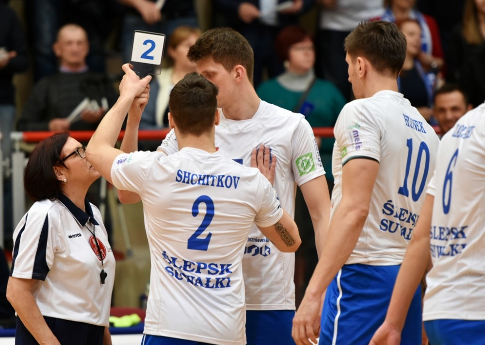 Ślepsk: Urbanowicz, Szczytkov, Zapłacki, Hunek, Rudzewicz, Lewiński - Andrzejewski (libero) oraz Winnik, Wasilewski, Mendak, Skrzypkowski