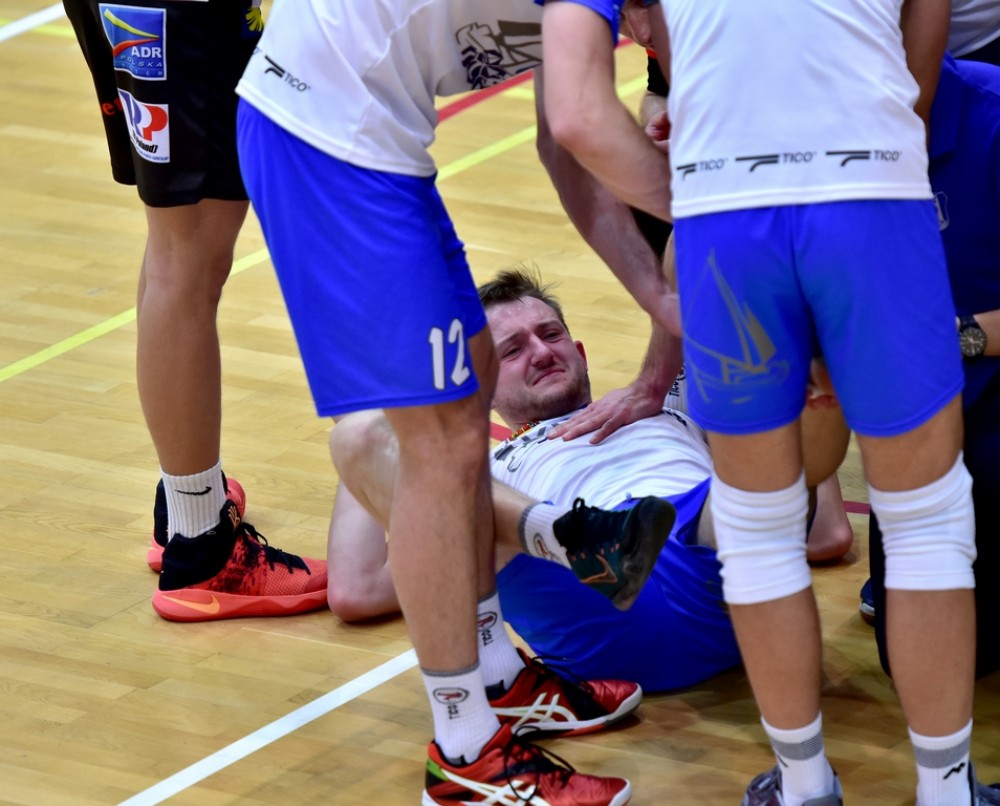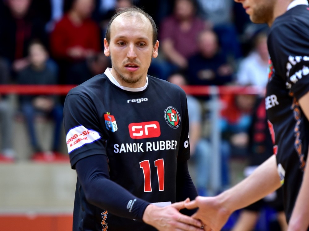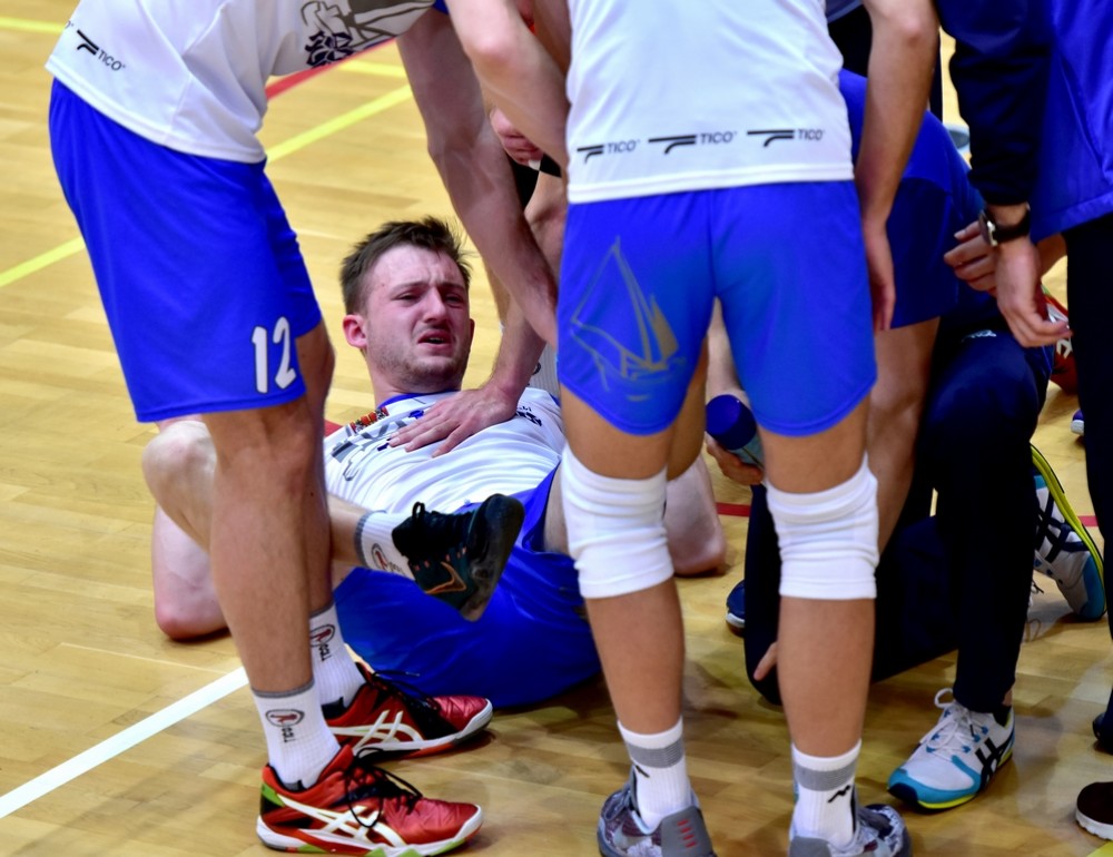 Wracając do meczu z TSV Sanok. W drugim secie, przy stanie 23:15 kontuzji doznał atakujący Ślepska Mateusz Linda, który zaliczył fatalny upadek na lewą nogę. Zawodnik na ramionach kolegów opuścił parkiet. Wszystko wskazuje na to, że jest to skręcenie i Mateusza czeka minimum dwutygodniowa przerwa. To oznacza, że w tym roku już nie zagra. Szkoda, bo był to jego bardzo, bardfzo dobry mecz.