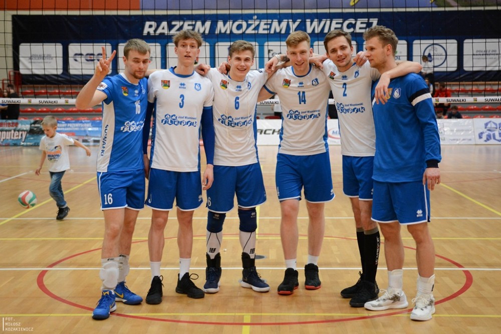 Do libero Jakuba Krupińskiego i Pawła Filipowicza (na fot. pierwszy z lewej), przyjmującego Jana Lesiuka (na fot. z nr. 6) i rozgrywającego Kacpra Gonciarza (na fot. pierwszy z prawej), którzy uzgodnili warunki na jakich zostają w Ślepsku Suwałki na sezon 2018/19 dołączył środkowy bloku Cezary Sapiński (na fot. z nr. 14).