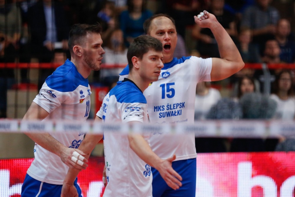 Ślepsk Suwałki: Szwaradzki, Gonciarz, Skrzypkowski, Rudzewicz, Rohnka, Siek, Filipowicz (Libero) oraz Kapaiev, Winnik, Tomczak, Sapiński,