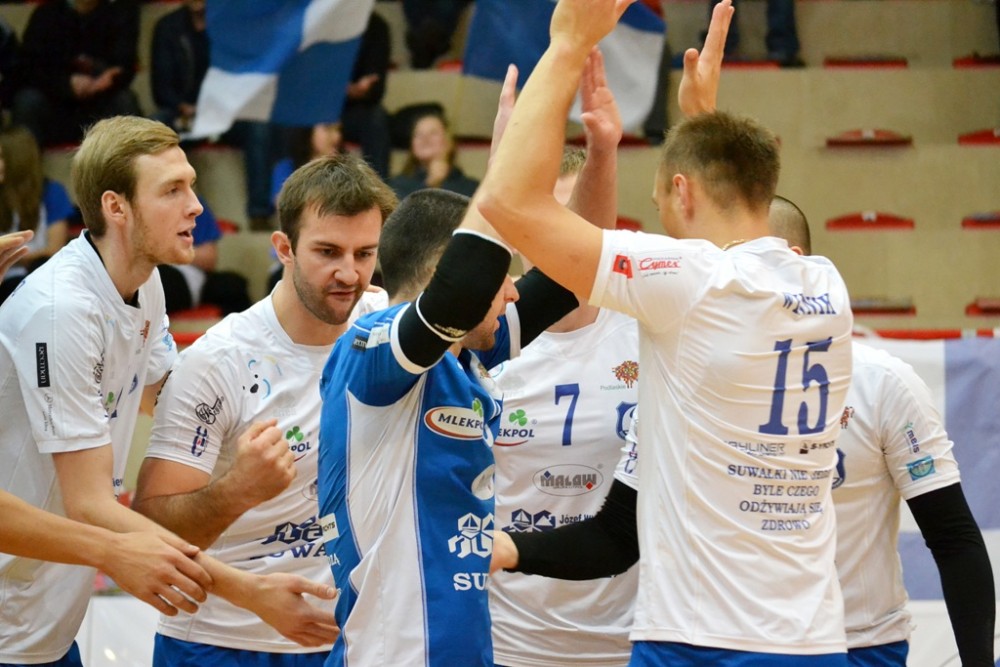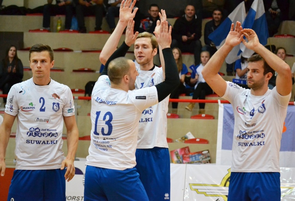Mecz od mocnego uderzenia rozpoczęli gospodarze, którzy raz po raz zatrzymywali rywali w bloku, a autowe zbicia siedlczan sprawiły, że błyskawicznie ich strata urosła do sześciu punktów. Jednak goście szybko otrząsnęli się po słabym początku, a sygnał do walki dał im Piotr Łukasik. Kiedy swoje ataki zaczęli kończyć także Jakub Guz i Karol Butryn wynik zaczął oscylować wokół remisu. Jednak taka sytuacja nie trwała zbyt długo, bowiem dobra postawa w polu serwisowym Kamila Skrzypkowskiego spowodowała, że na drugim czasie technicznym suwalczanie ponownie osiągnęli bezpieczne prowadzenie. Mimo, że przyjezdni starali się odrabiać straty, to zbyt często nie potrafili przedrzeć się przez blok rywali, przez co nie byli w stanie nawiązać z nimi wyrównanej walki. W końcówce obraz gry nie uległ zmianie, a pewne zbicia podopiecznych trenera Poskrobko poprowadziły ich do sukcesu (25:20).