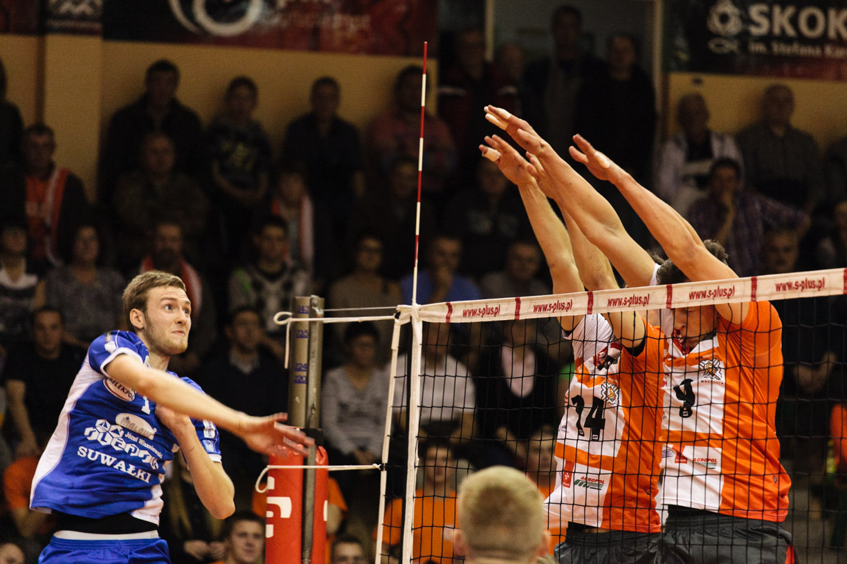 Siatkarze Ślepska Suwałki przegrali w sobotę 1:3 wyjazdowy mecz z Krispolem Września. Na sobotni mecz w wyjściowym składzie Ślepska zabrakło na przyjęciu Kamila Skrzypkowskiego, którego zastąpił rzadko wykorzystywany w tym sezonie Krzysztof Modzelewski. Na rozegraniu spotkanie zaczął z kolei Łukasz Makowski, który z drużyną trenuje od kilku tygodni. Te zmiany nie pomogły w pierwszym secie. Gospodarzom udało się odskoczyć na trzy punkty (20:17), a siatkarze Ślepska nie potrafili zniwelować tej różnicy i przegrali do 21.