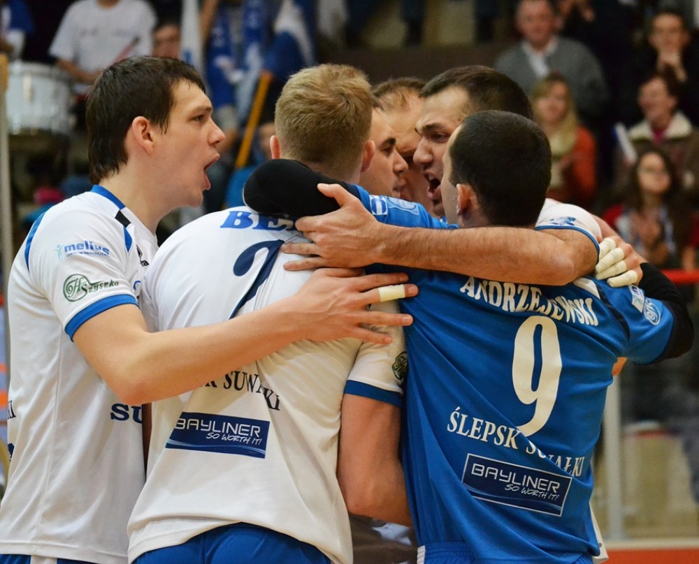 Ślepsk: Kałasz, Skrzypkowski, Makowski, Skorij, Schamlewski, Winnik, Andrzejewski (libero) oraz Pachliński, Bell, Modzelewski.