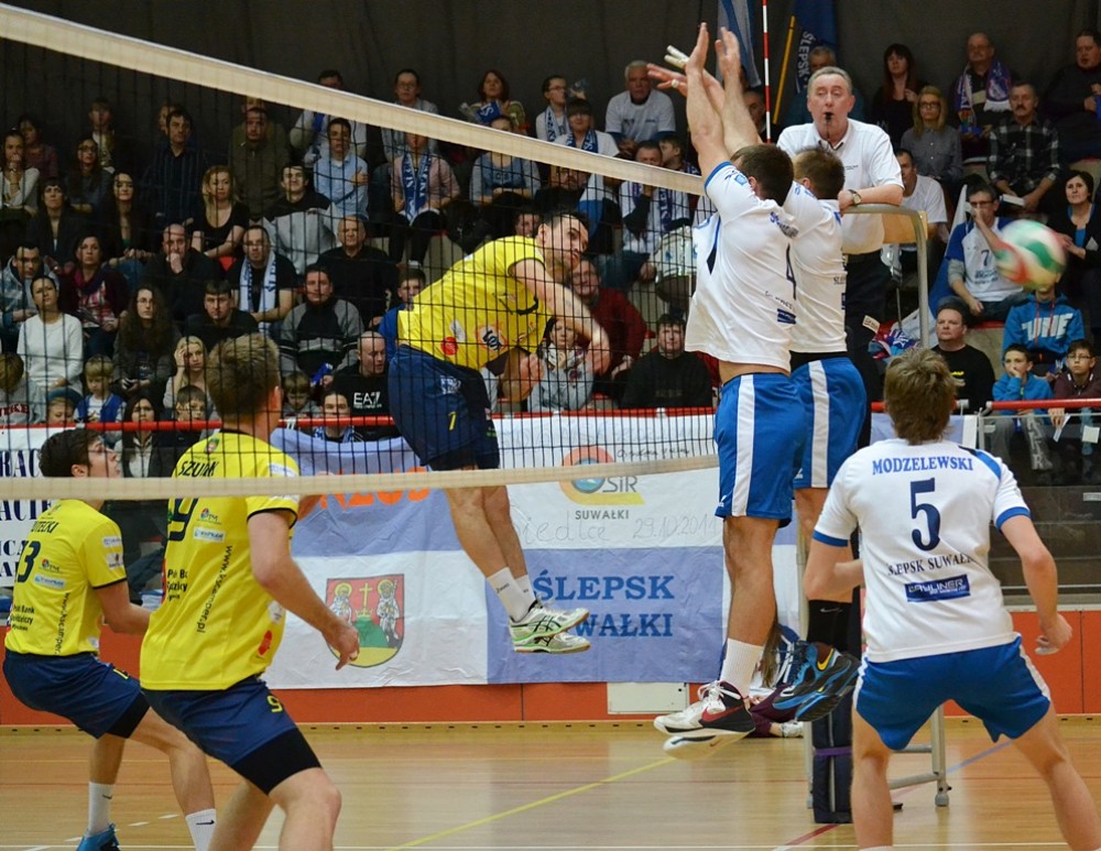 Ponad dwie godziny twardej, męskiej siatkówki zobaczyli kibice w Suwałkach, gdzie miejscowy Ślepsk zmierzył się Camperem Wyszków. Oba zespoły w pięciosetowym pojedynku na szczycie I ligi mężczyzn podzieliły się punktami.