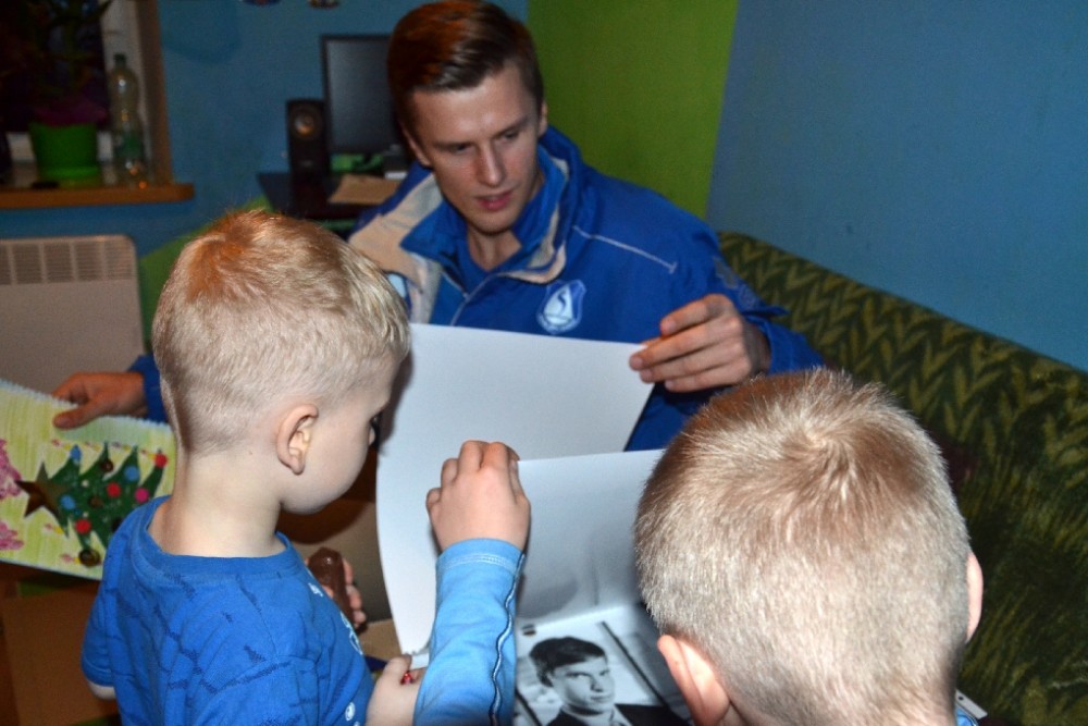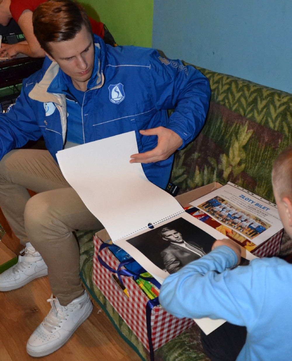 Jak się okazało starszy z chłopców bardzo lubi sport i ogromnie ucieszył się z kalendarza z zawodnikami. „Duży” Kuba i Przemek jako pierwsi złożyli autografy na kalendarzu, a „mały” Kubuś obiecał, że zbierze je od wszystkich zawodników.