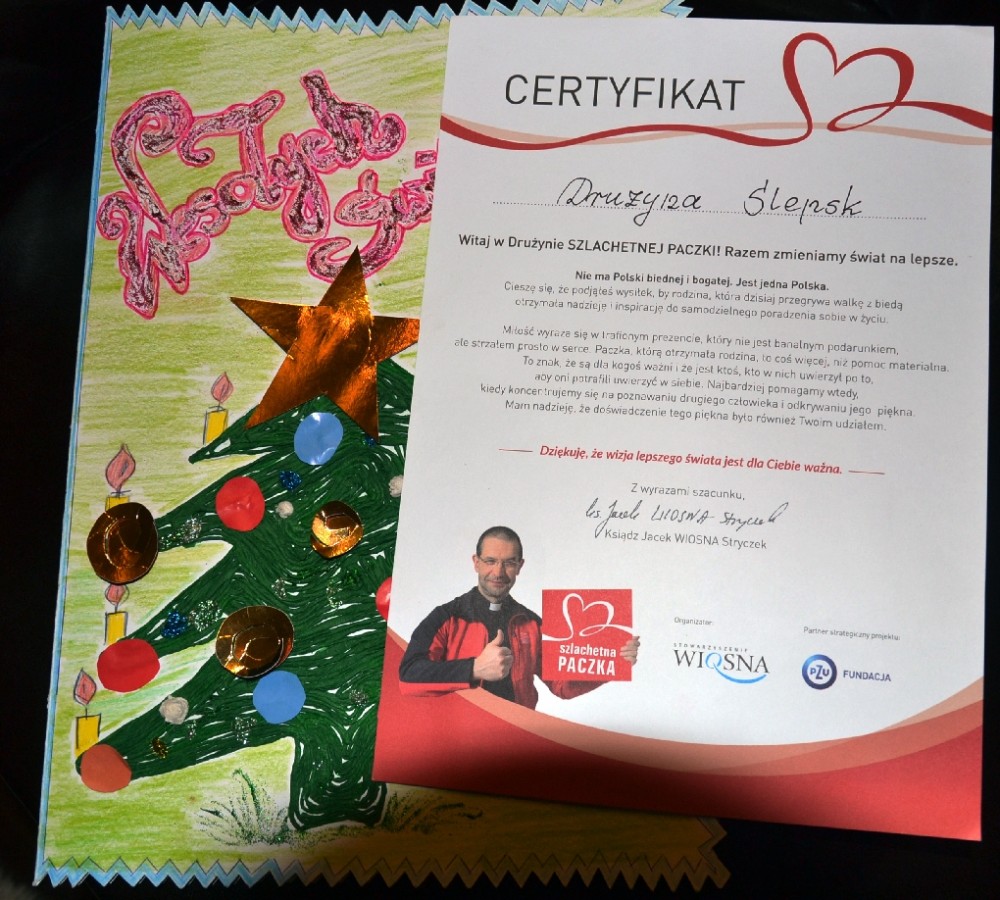 Dzięki kibicom, sponsorom i zawodnikom Ślepska Suwałki jedna z suwalskich rodzin będzie miała szczęśliwe, spokojne święta Bożego Narodzenia. W poniedziałek, 15.12. dwaj zawodnicy I-ligowej drużyny Przemysław Smoliński i Jakub Urbanowicz, z prezentami zakupionymi za pieniądze zebrane przed meczem PP Ślepsk – KPS Siedlce, odwiedzili rodzinę wybraną z listy zgłoszonych do akcji „Szlachetna paczka”.