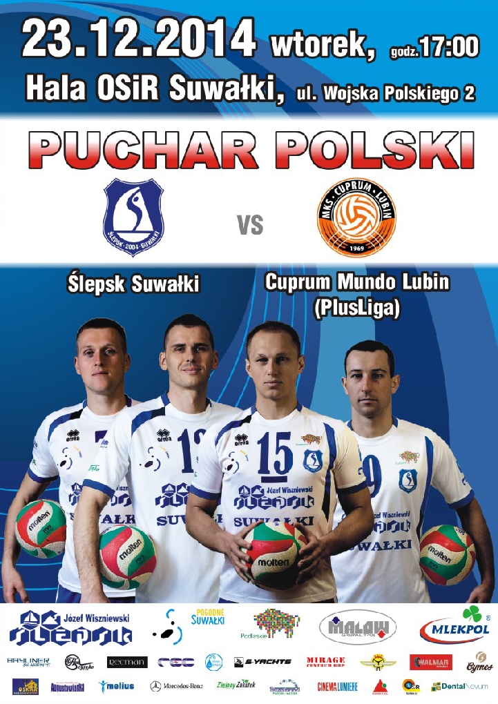 Szanse więc są, przynajmniej teoretyczne. Lubinianie doskonale radzą sobie w siatkarskiej elicie. Pokonali wszak dwukrotnie 3:2 na wyjeździe i w sobotę u siebie 3:0 (25:19, 25:22, 25:16) ZAKSĘ Kędzierzyn-Koźle, a przegrali 2:3 (prowadzili już 2:0) w Bełchatowie ze Skrą. Bełchatowianie lub AZS Indykpol Olsztyn to kolejny rywal (7.01.15) zwycięzcy meczu w Suwałkach. Mariusz Wlazły i spółka na parkiecie suwalskiej hali OSiR? Kto by nie chciał tego zobaczyć i przeżyć...