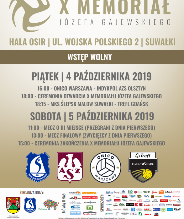Jubileuszowy turniej ku pamięci zmarłego w 2010 roku prezydenta Suwałk będzie miał najsilniejszą z dotychczasowych obsadę. Wystąpią same plusligowe drużyny, z wicemistrzem Polski Onico Warszawa na czele.