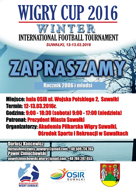 W poÅ‚owie marca, w dwudniowym turnieju Wigry Winter Cup 2016 wystÄ…piÄ… zawodnicy urodzeni w 2006 i mÅ‚odsi. Przed rokiem walczyÅ‚o w nim 10 ekip z Rosji, Litwy i Polski. TriumfowaÅ‚a prowadzona przez Dariusza Koncewicza drużyna Akademii PiÅ‚karskiej Wigry SuwaÅ‚ki, która w finale pokonaÅ‚a 3:2 MOSP BiaÅ‚ystok. Najlepszym zawodnikiem turnieju zostaÅ‚ Krzysztof Rybak, a królem strzelców zdobywca 12 goli Kacper Rejterada (obaj AP Wigry).