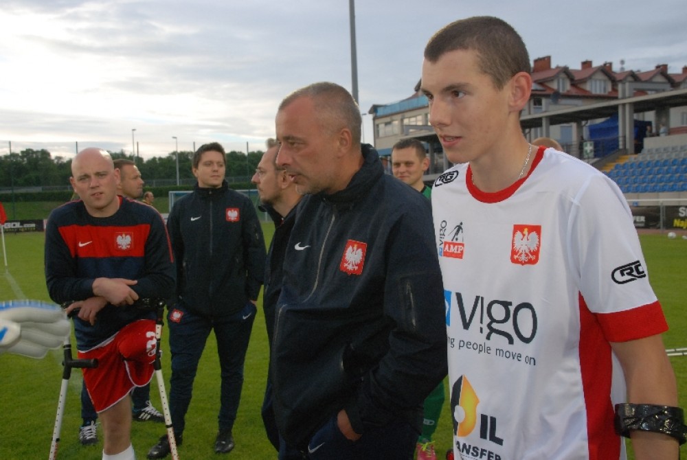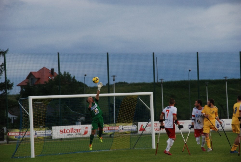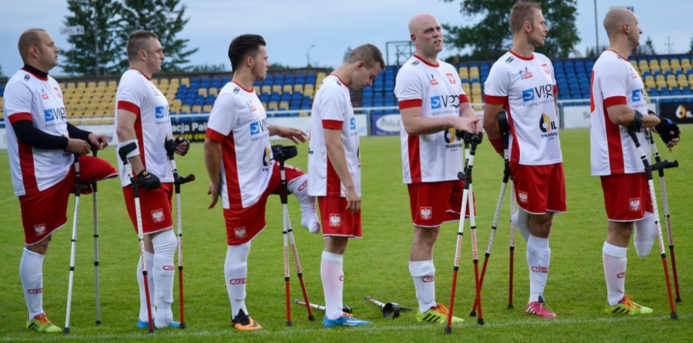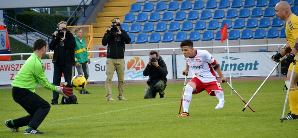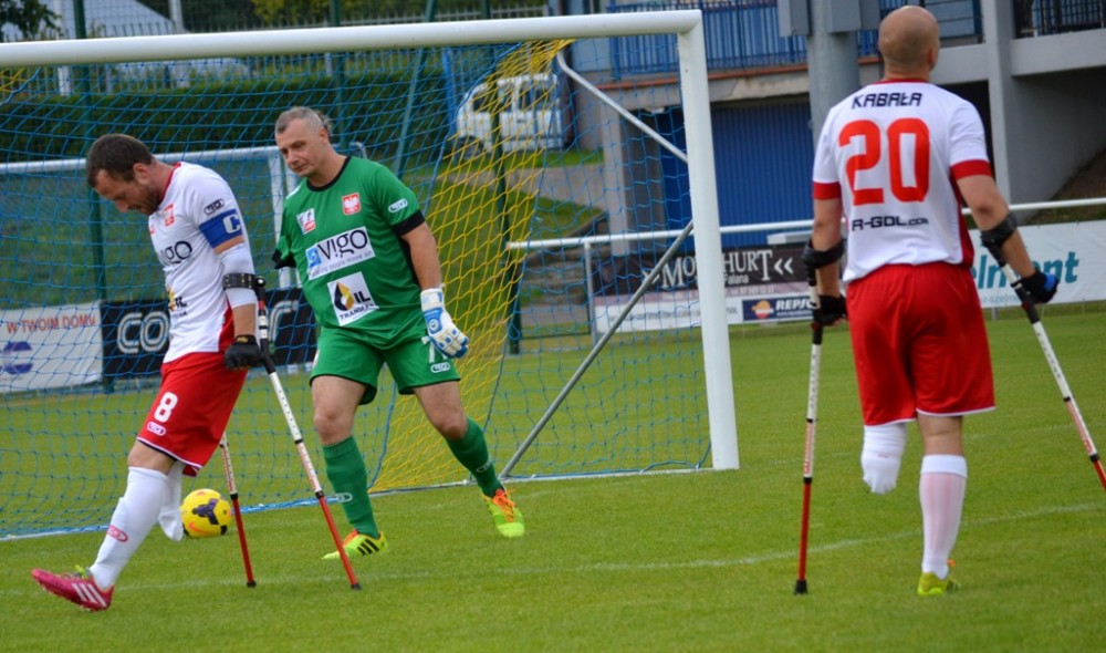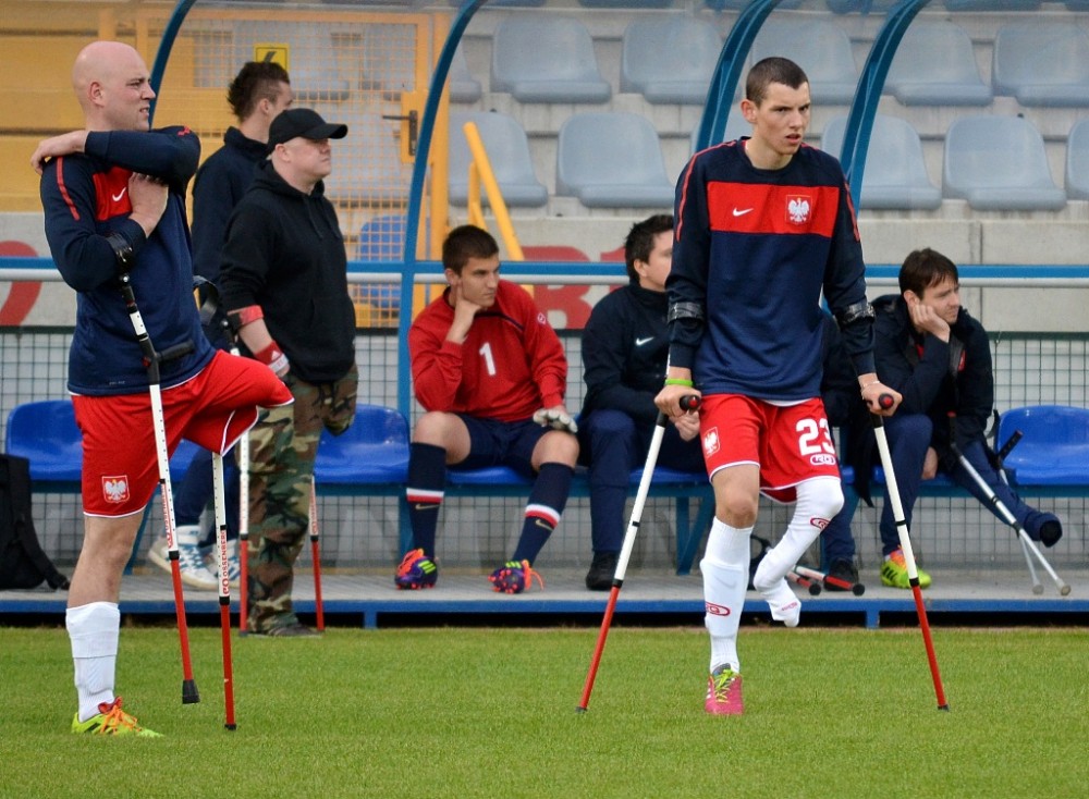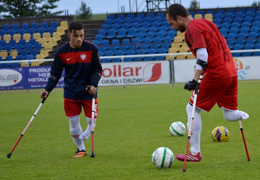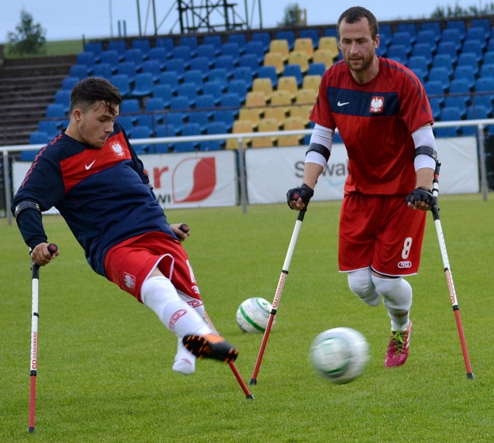 W rozegranym w sobotę w Suwałkach towarzyskim meczu amp futbolu (piłka nożna dla osób po amputacjach i osób z wadami kończyn; zawodnicy grający w polu są po amputacji nogi, a bramkarze po amputacji ręki) Polska pokonała 2:1 Ukrainę. W reprezentacji biało-czerwonych zadebiutował 17-letni ełczanin Dawid Dobkowski (na zdjęciu z lewej przy piłce).