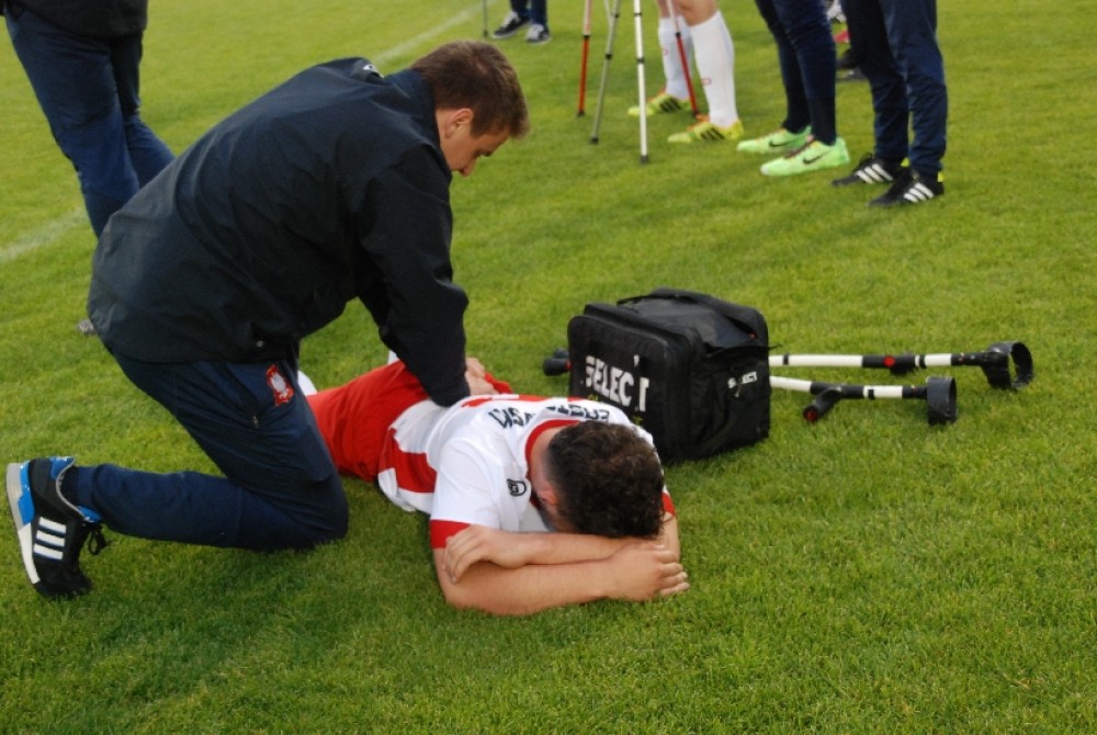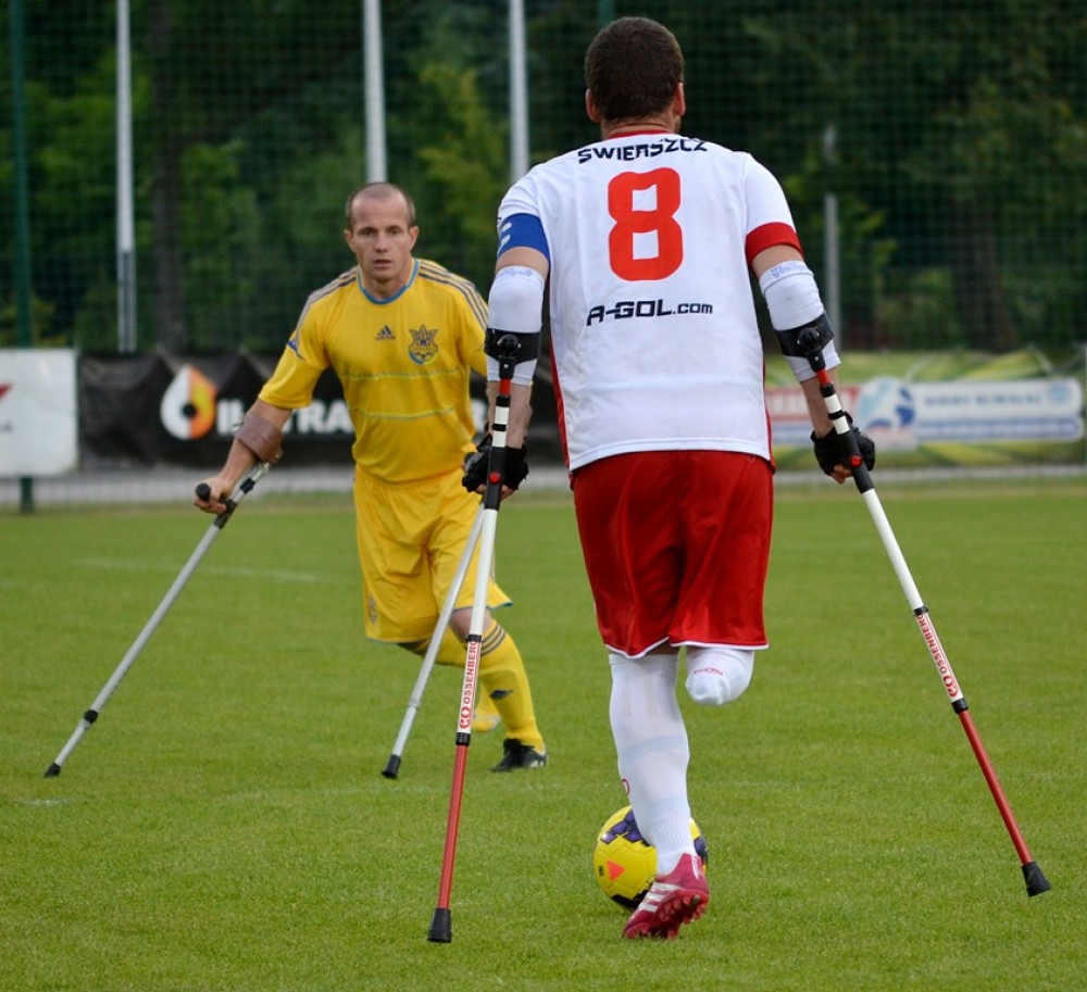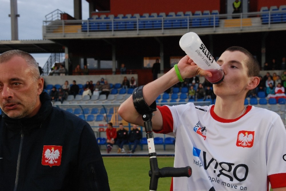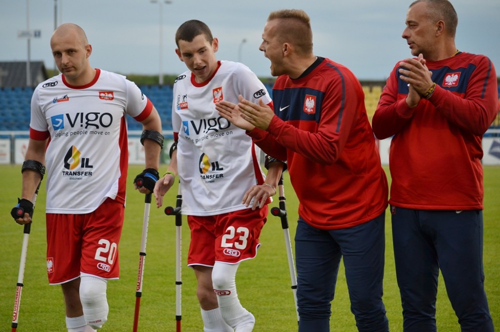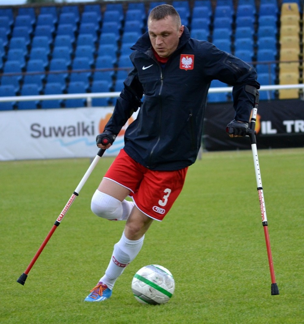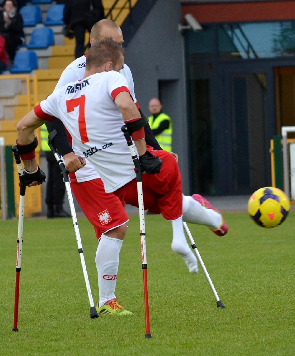W rozegranym w sobotę w Suwałkach towarzyskim meczu amp futbolu (piłka nożna dla osób po amputacjach i osób z wadami kończyn; zawodnicy grający w polu są po amputacji nogi, a bramkarze po amputacji ręki) Polska pokonała 2:1 Ukrainę. W reprezentacji biało-czerwonych zadebiutował 17-letni ełczanin Dawid Dobkowski (na zdjęciu z lewej przy piłce).
