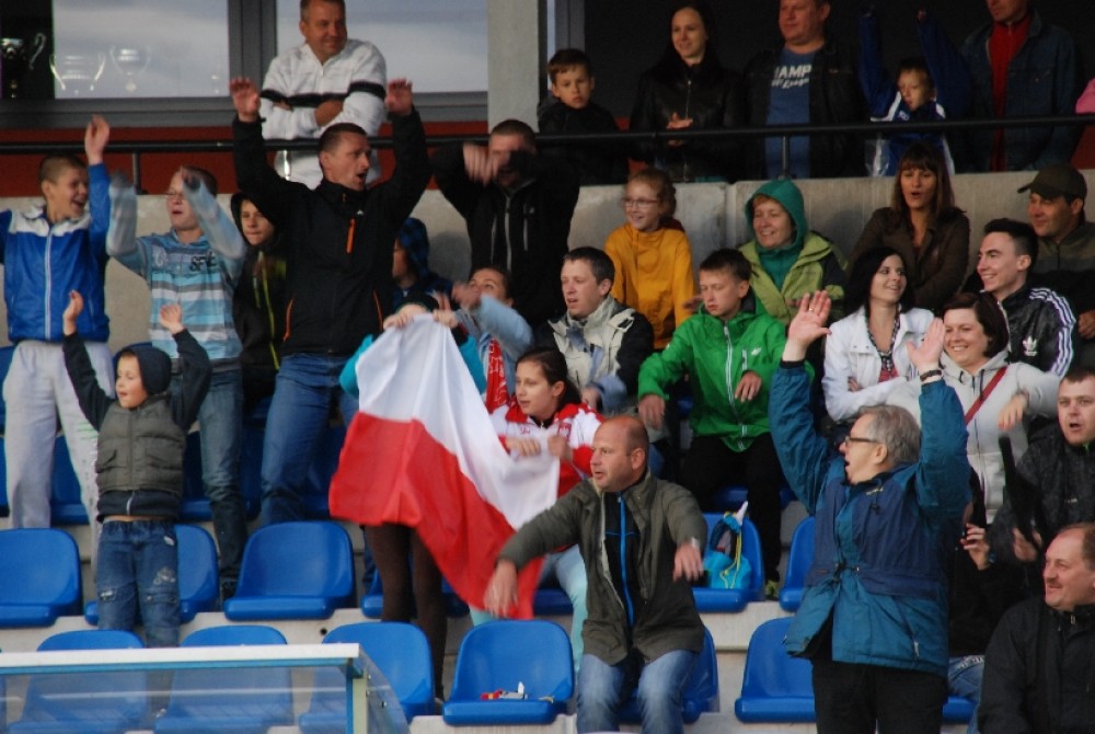 Utrata gola nie załamała podopiecznych Marka Drogosza. W 13 min. bramkarza gości próbował zaskoczyć Kamil Rosiek, w 15 – Bartosz Łastowski (ps. Messi), w 20 – Przemysław Świerszcz, a w 21 – Mateusz Kabała. Szansę na podwyższenie wyniku w 22 min. miał Jurii Susch (król strzelców Amp Futboll Cup 2013), ale na posterunku był Zadębski. Ataki Polaków zakończyły się powodzeniem w 23 min., kiedy po rozegraniu piłki pomiędzy Łętowskim i Kabałą, ten drugi doprowadził od remisu.