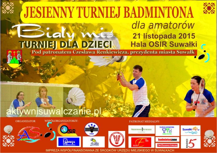 Stowarzyszenie Aktywni Suwalczanie zaprasza miłośników badmintona do udziału w zaplanowanym na 21. listopada turnieju pod patronatem Prezydenta Miasta Suwałk.