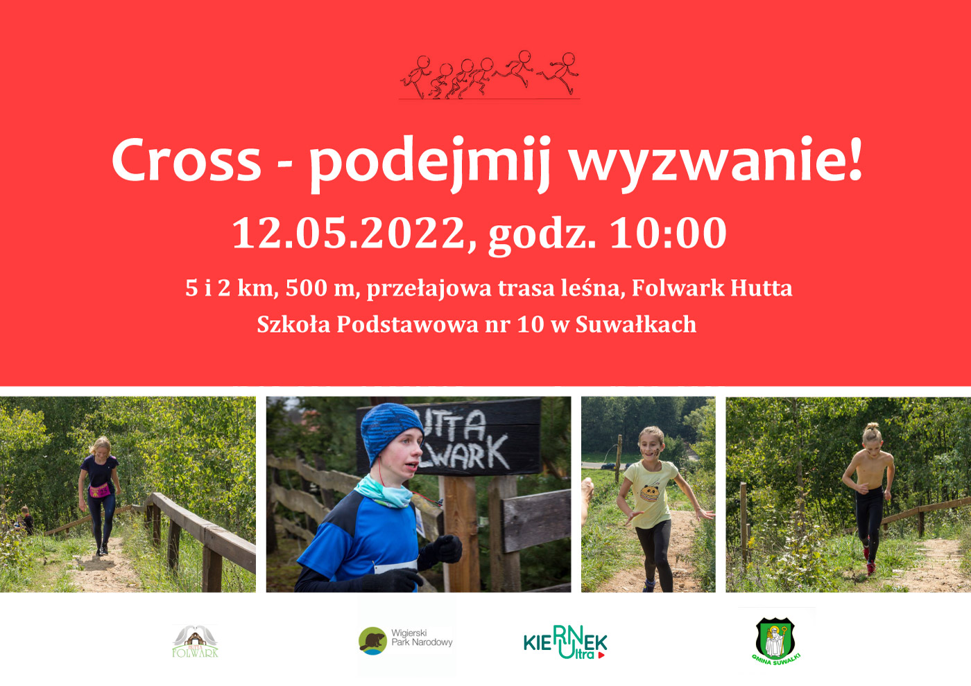 ImprezÄ™, którÄ… honorowym patronatem objÄ…Å‚ Wójt Gminy SuwaÅ‚ki, organizujÄ… SzkoÅ‚a Podstawowa nr 10 im. Olimpijczyków Polskich w SuwaÅ‚kach, Fundacja Kierunek Ultra oraz Folwark Hutta.