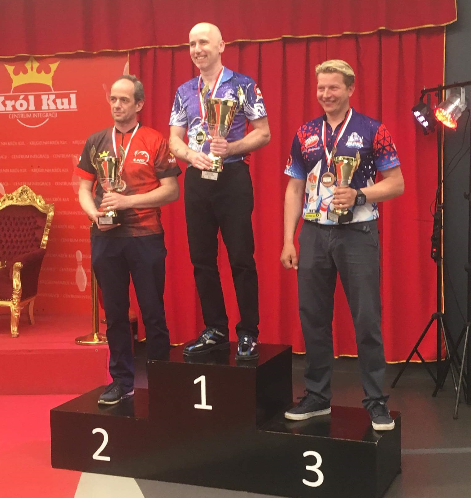 Robert Chodorowski (na zdjęciu drugi z lewej) z Klubu Bowlingowego Suwałki nie obronił tytułu w kategorii wieku 40-49 lat sprzed roku. Tym razem stanął na najniższym stopniu podium.