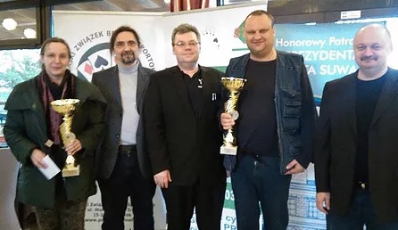 Do przeprowadzonej w niedzielÄ™ w Sali przy ul. Zastawie, trwajÄ…cej niemal sześć godzin rywalizacji przystÄ…piÅ‚o 47 par, wÅ›ród nich 13 z Litwy i cztery z BiaÅ‚orusi. NajwiÄ™kszÄ… w tej dyscyplinie imprezÄ™ w naszym województwie organizuje Suwalskie Towarzystwo Brydżowe, którego prezesem jest MirosÅ‚aw Liszewski (na zdjÄ™ciu od prawej). WÅ‚aÅ›nie on razem z Januszem Kowalewskim zajÄ™li 13. miejsce, najlepsze z czterech suwalskich duetów, jakie wystÄ…piÅ‚y w turnieju.