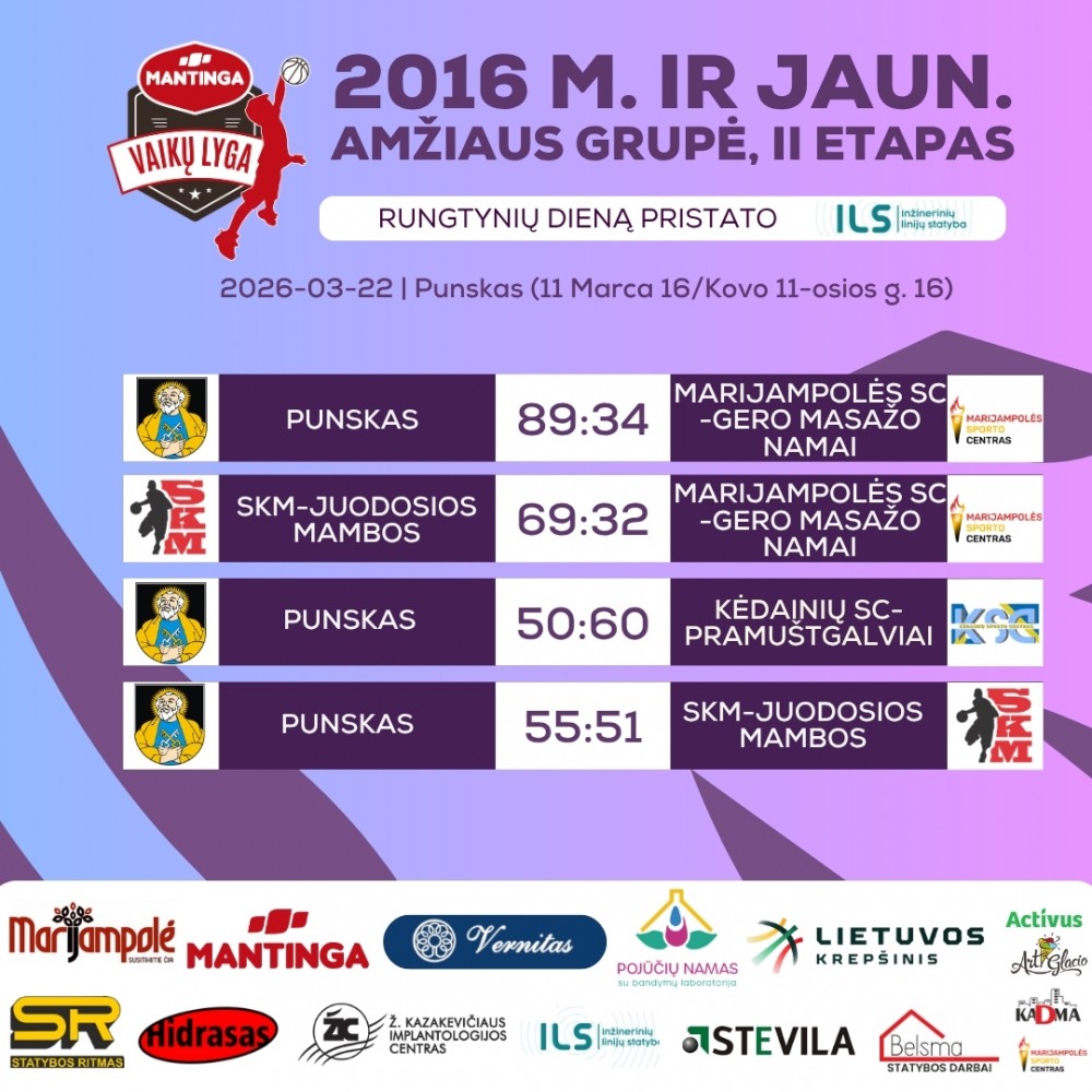 W niedzielę, 22 marca w Puńsku miał miejsce jeden z etapów rozgrywek koszykówki dzieci rocznika 2016 i młodszych w ramach Matinga Liga Dziecięca Mariampolskiej Amatorskiej Ligi Koszykówki.