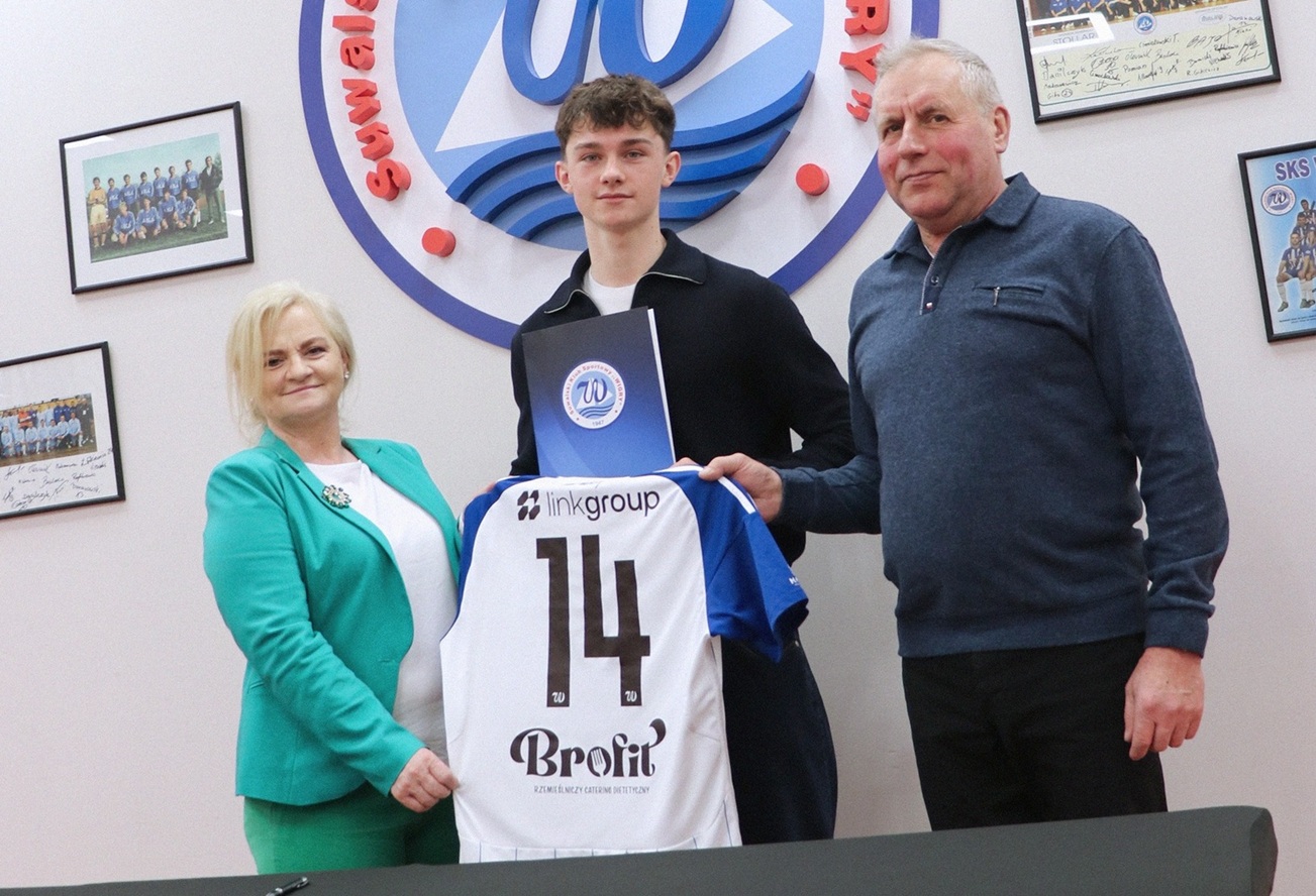 Zgodnie z tym planem Wigry przedłużają umowy z piłkarzami, których chcą zatrzymać w klubie na dłużej. W miniony wtorek umowę obowiązującą do końca 2028 roku podpisał 17-letni Filip Michałowski (na górnym zdjęciu)