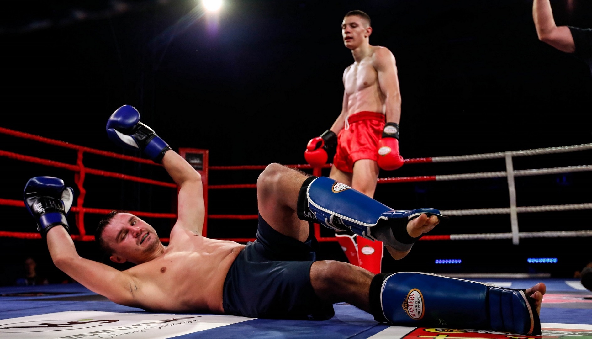 Początek gali był wyjątkowy, pierwsze trzy pojedynki zakończyły się przed czasem. Głośno dopingowany przez publiczność Adrian Rzatkowski z Panzera Suwałki tak mocno zaatakował Krystiana Ruszczyka z Black Shadows Ełk ciosami na wątrobę, że rywal już w pierwszej rundzie był liczony trzykrotnie i starcie trwało ledwie póltorej minuty.