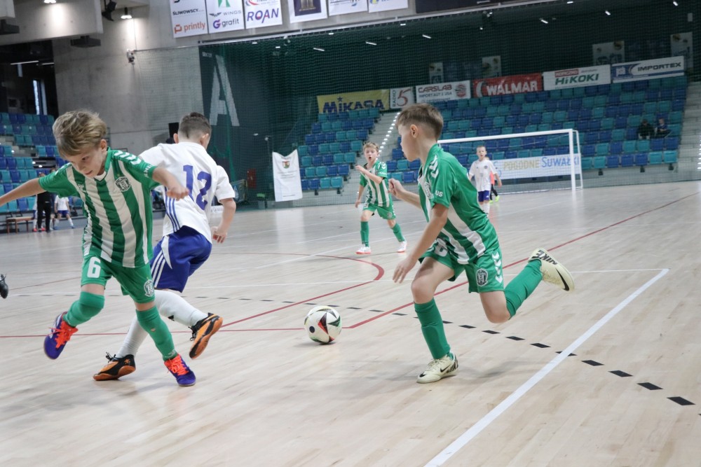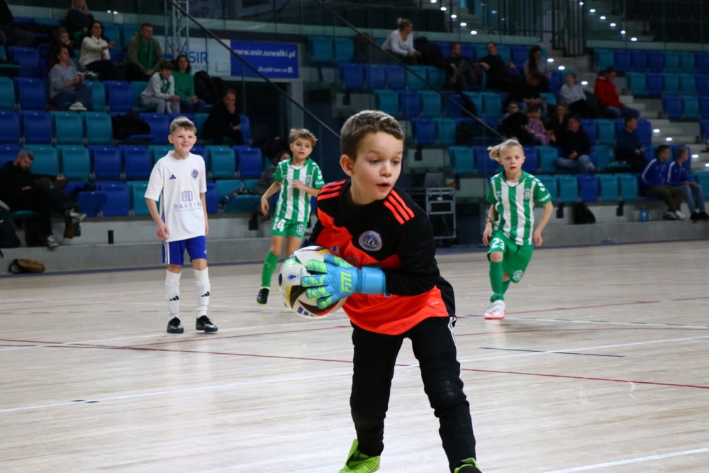 Na parkiecie hali Suwałki Arena w mikołajkową sobotę został rozegrany międzynarodowy Gwiazdkowy Turniej Rocznika 2017, organizowany przez Akademię Piłkarską Wigry Suwałki.