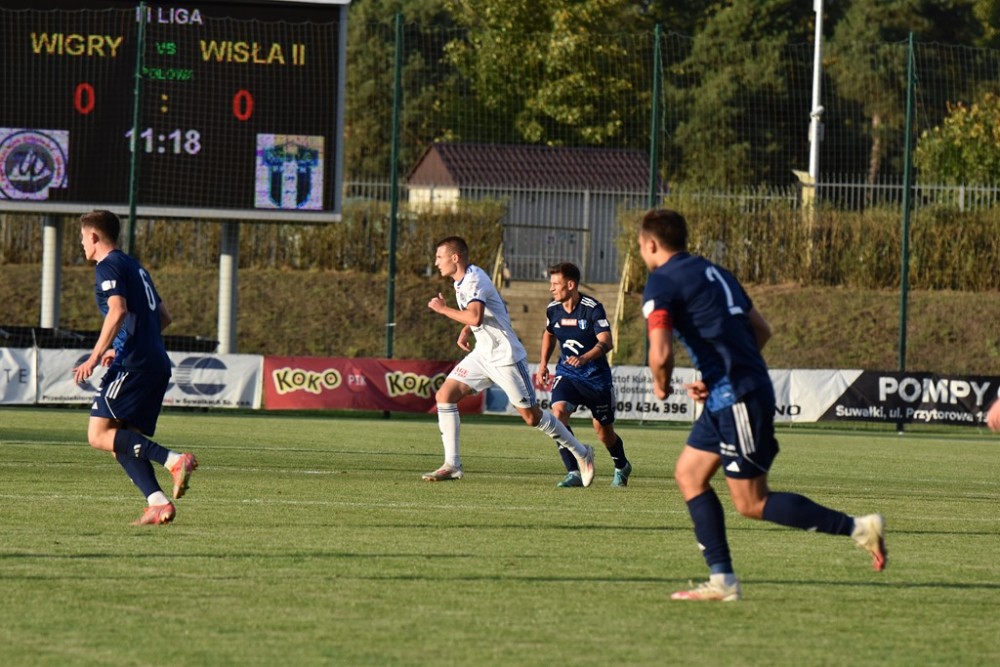 Suwalscy kibice mogli oglądać Jakuba Witka (na górnym zdjęciu z nr 6 w walce o piłkę z Patrykiem Bednarczykiem) we wrześniu ubiegłego roku, kiedy Wigry pokonały Wisłę II Płock 2:0. Kolejna sposobność będą mieli już w tę sobotę, 26 lipca o godz. 11:00 podczas sparingu Wigier ze Zniczem Biała Piska, beniaminkiem Betclic 3 Ligi.