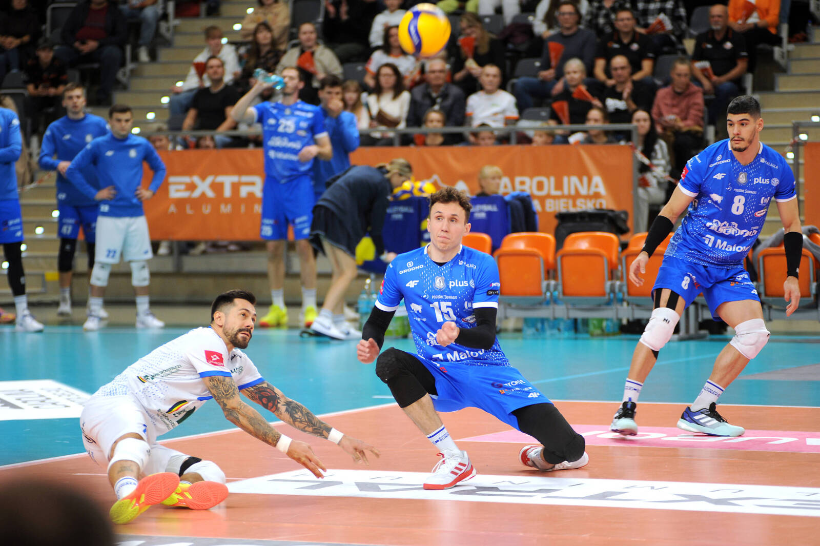 Marcin Krawiecki, jedyny rozgrywający suwalskiej drużyny od początku stanął na wysokości zadania, ale trochę gorzej spisywali się jego koledzy na przyjęciu. Dyrygowani na boisku przez Benjamina Toniuttiego gospodarze odjechali na 11:6 i 13:10. Efektownie zaatakował wówczas Henrique Honorato, punkty na zagrywce i w ataku dorzucił niezawodny w tej partii Bartosz Filipiak i to Ślepsk Malow wyszedł na prowadzenie 17:16. Podopiecznych Dominika Kwapisiewicza nie zniechęciło to, że niewielką przewagę – 23:22 – po ataku Arkadiusza Żakiety, byłego gracza Ślepska odzyskali Tomasz Fornal, Norbert Huber, Anton Bremhe i spółka. Wyrównali po zepsutej zagrywce Fornala, wywalczyli setbola po wybloku Quentina Jouffroy i ataku Honorato, a seta zagrywką atomową zagrywką w libero miejscowych Jakuba Popiwczaka zakończył Paweł Halaba – 25:23.