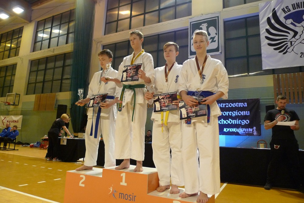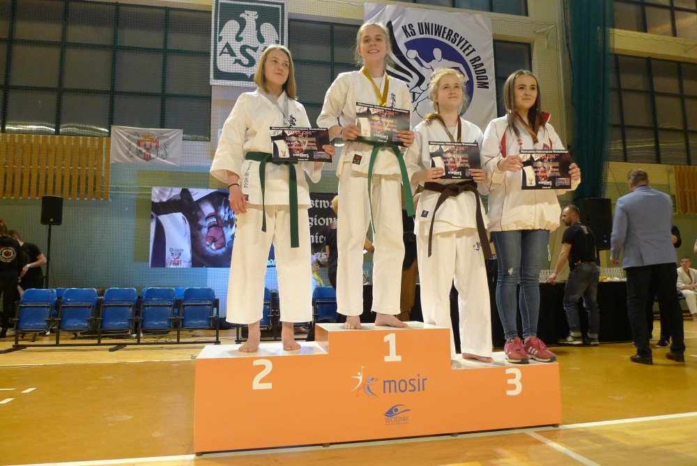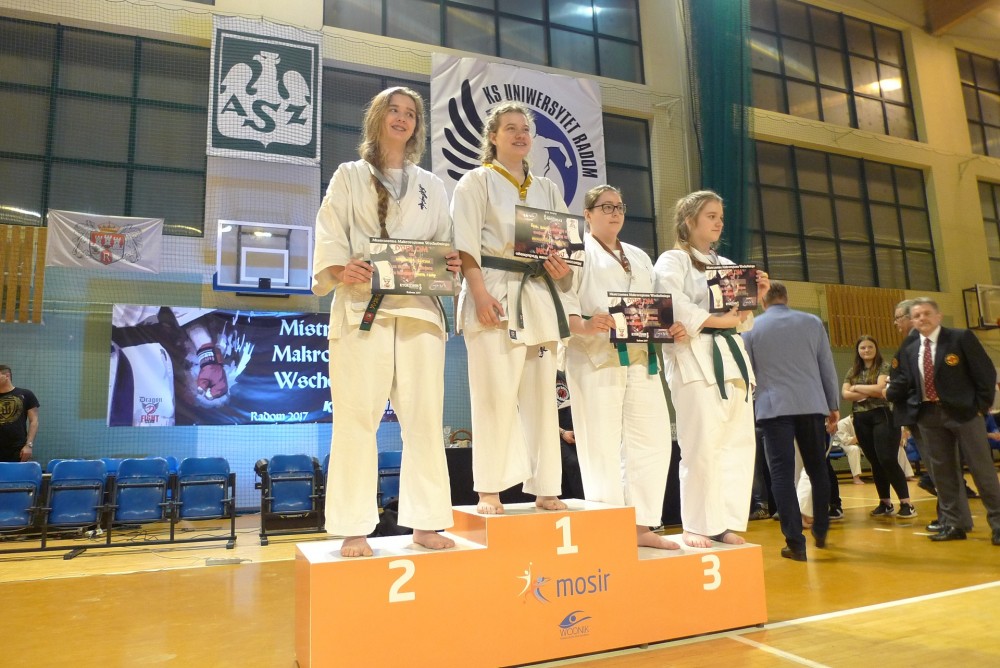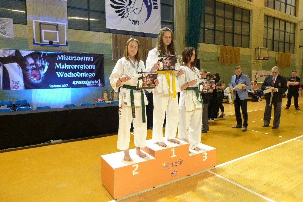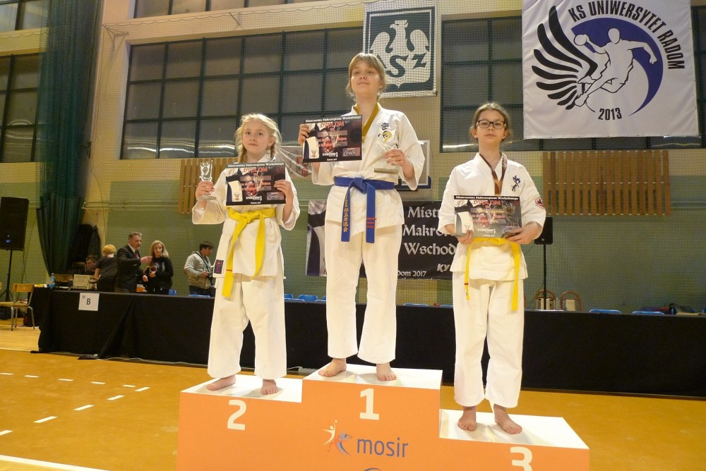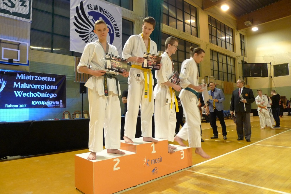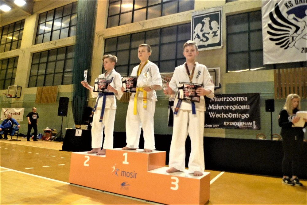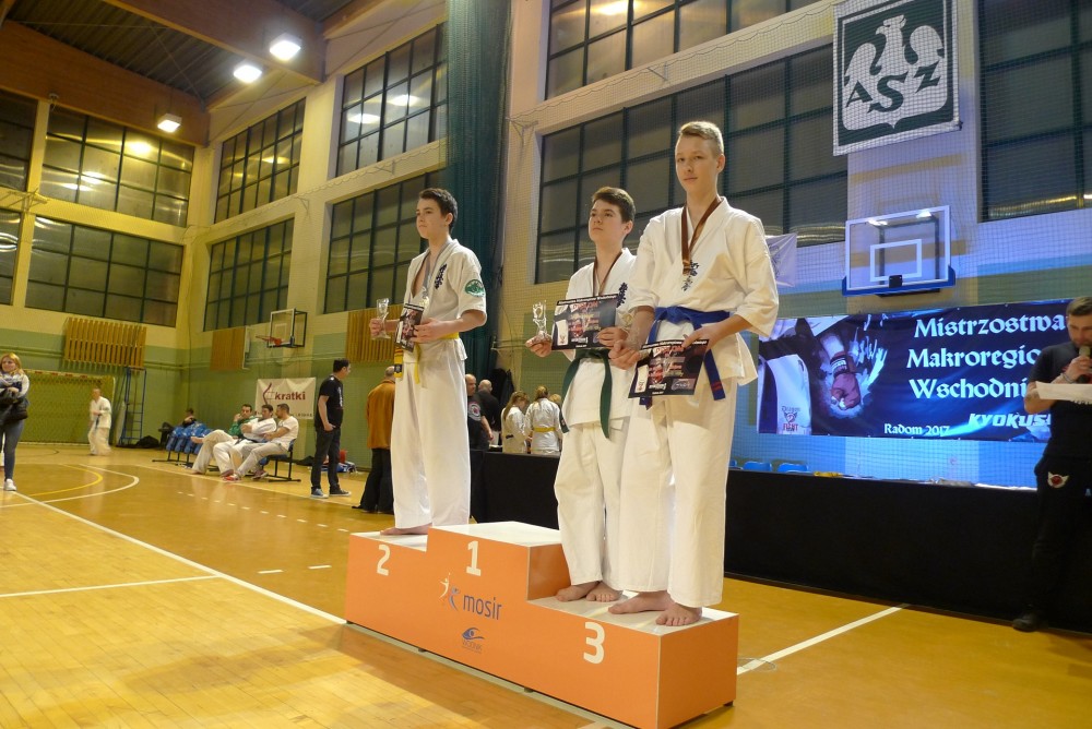 Z jednym złotym, dziewięcioma srebrnymi i siedmioma brązowym i medalami z rozegranych w Radomiu Mistrzostw Makroregionu Wschodniego oraz Międzywojewódzkich Mistrzostw Młodzików wrócili zawodnicy Suwalskiego Klubu Karate Kyokushin. Jedyny złoty krążek wywalczyła Aleksandra Mozerys w kumite. Ola zdobyła także srebro w kata