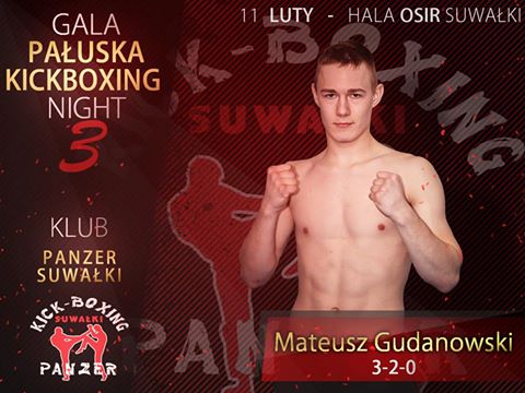 Mateusz Gudanowski to drugi reprezentant działającej w Augustowie sekcji Kickboxing Panzer Suwałki, z suwalskim klubem związany od blisko 3 lat. W tym czasie był uczestnikiem m.in. Mistrzostw Polski, gdzie w 2016 w Kartuzach, w silnie obsadzonych zawodach, zajął 5 miejsce. Największym sukcesem Mateusza jest zdobycie złotego medalu podczas Otwartych Międzynarodowych Mistrzostw Wilna.