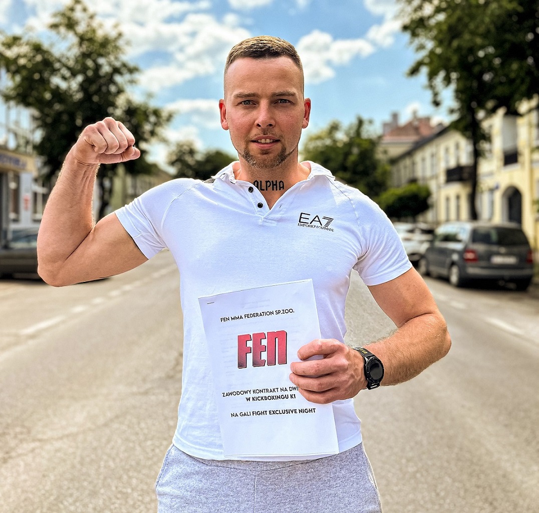 Dziś oficjalnie ogłosiliśmy podpisanie zawodowego kontraktu w Kickboxingu dla federacji FIGHT EXCLUSIVE NIGHT na dwa zawodowe pojedynki – informuje Patryk Szyszko, zawodnik i trener Alpha Fight Club Suwałki.