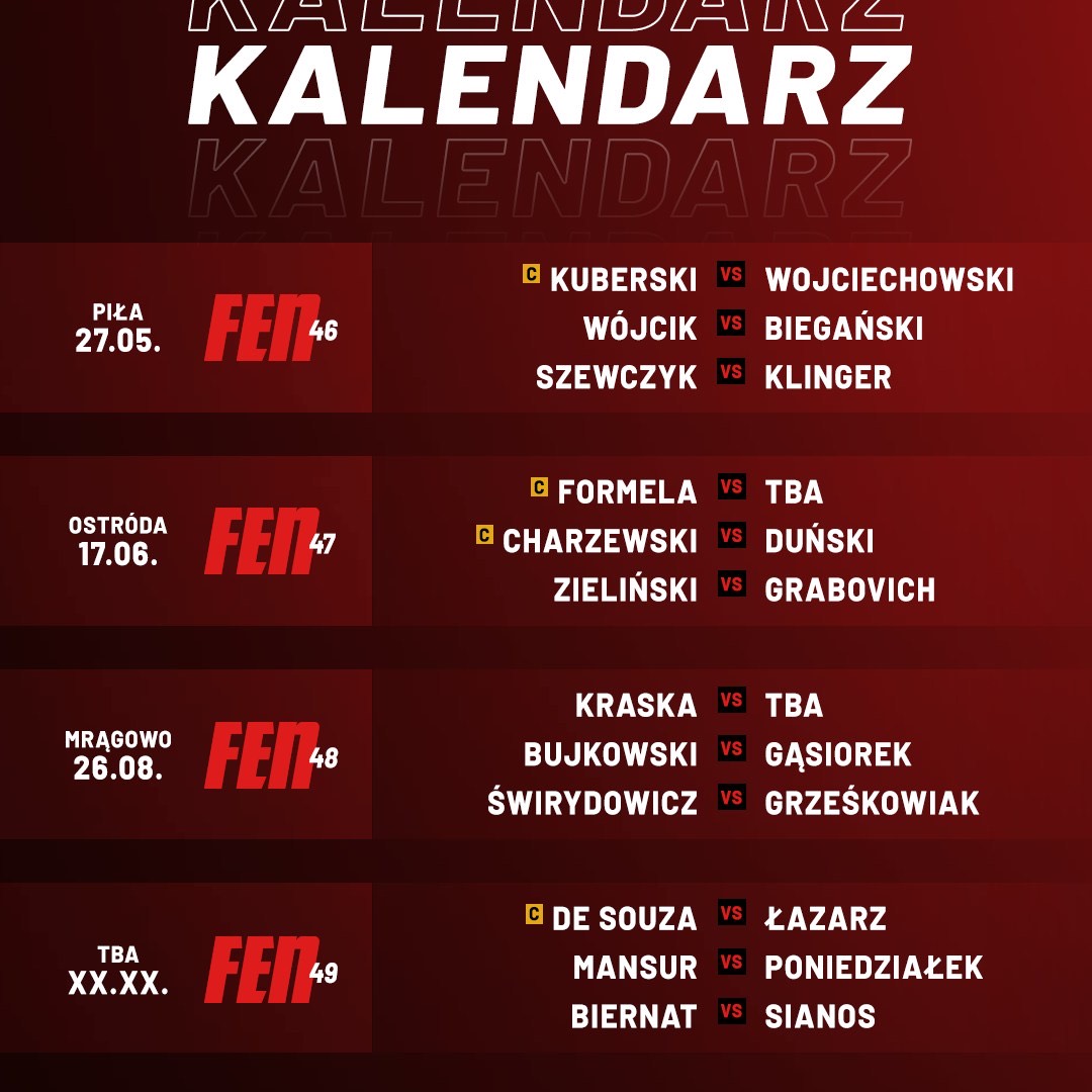 Pierwszy pojedynek odbędzie się 26 sierpnia w Mrągowie w Mrągowie na gali FEN 48. Walczący w kategorii wagowej do 85 kg Patryk Szyszko zmierzy się z Karolem Łasiewickim z Ostrołęki.