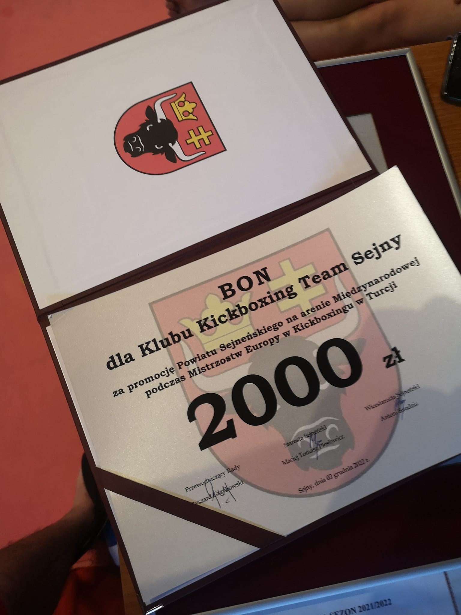 W piątek, 2 grudnia podczas sesji Rady Powiatu Sejneńskiego podziękowano Robertowi Dochodowi i Rafałowi Kamińskiemu, zawodnikom Klubu Kickboxing Team Sejny, za reprezentowanie i promocję powiatu na Mistrzostwach Europy w Kickboxingu w Turcji.