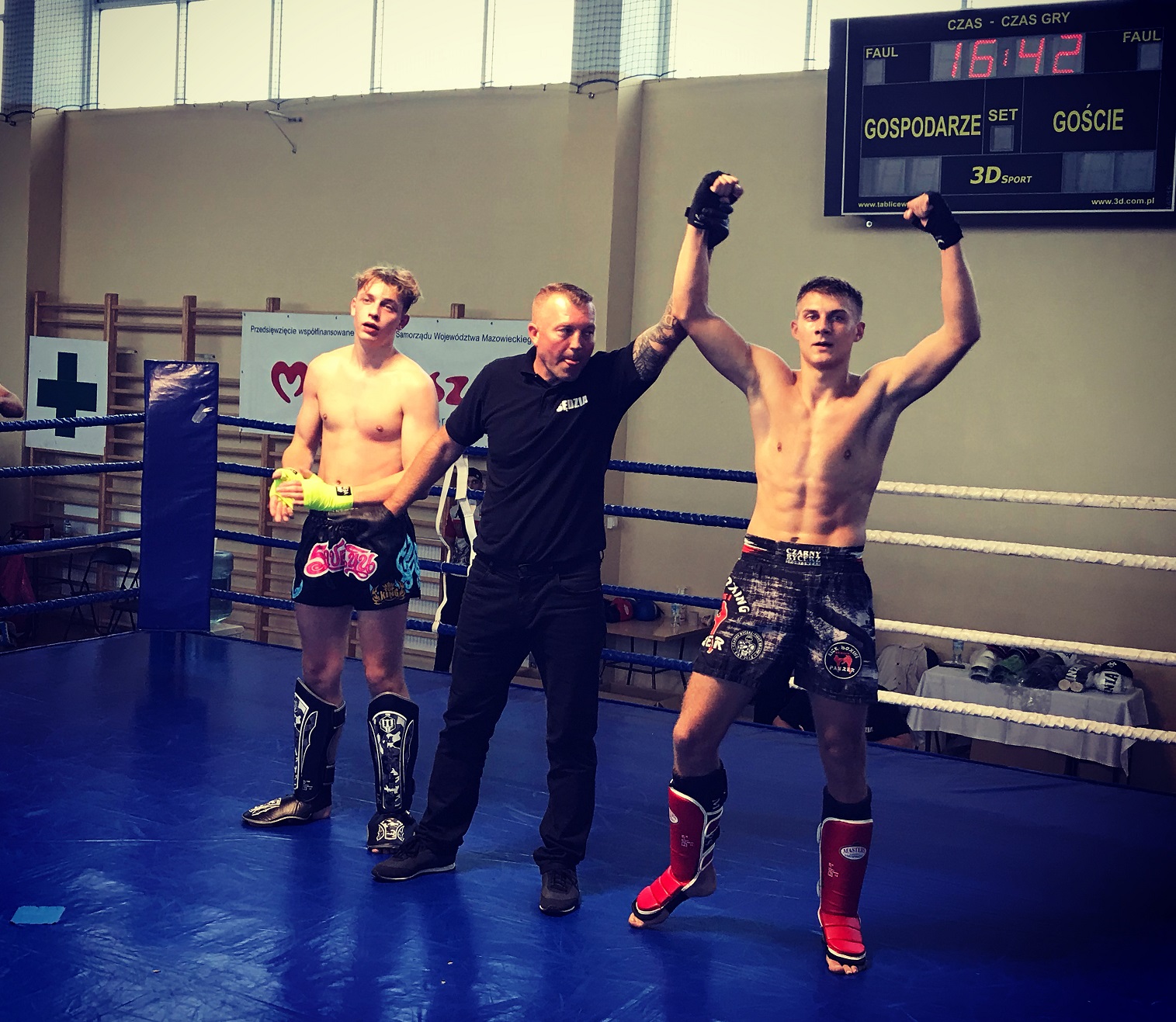 WalczxÄ…cy w tej samej wadze Adrian DaniÅ‚o w K1 po znakomitej walce, nagrodzonej przez kibiców owacjÄ… na stojÄ…co, zwyciężyÅ‚ 3:0 Huberta Bednarczyka z Akademii Gorilla Ostrów Mazowiecka.