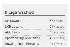 Nasi zawodnicy udając się na ostatnie ligowe kolejki Drużynowych Mistrzostw Polski byli liderami II ligi grupy wschód. Aby przypieczętować sukces musieli zaprezentować dobrą formę i zdobyć kilka punktów. Przeciwnicy postawili twarde warunki, ale w siódmej kolejce zespół z Suwałk uległ jedynie gospodarzom i był coraz bliżej promocji. Ostatnia ósma kolejka ponownie była popisem naszych zawodników którzy przegrali tylko z LKB Leszno. Najlepszy w naszym zespole w siódmej kolejce był Wojciech Górski ze średnią 196 punktów na mecz. W ósmej najlepiej rzucał Dariusz Chalecki ze średnią 202 punkty.