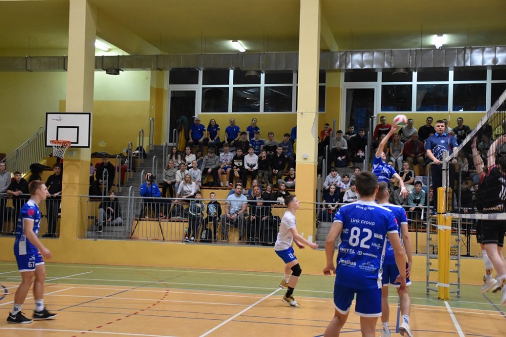 Piątkowy mecz w wypełnionej po brzegi kibicami, znajomymi, rodzicami własnej hali suwalscy siatkarze rozpoczęli znakomicie. Matusz Małyszko, Kacper Zackiewicz i Oskar Stalewski popisywali się blokami i wyblokami, z tyłu wszystko bronił libero Eryk Murawko, a Kacper Gibas umiejętnie rozgrywał do Adama Cherubina i Piotra Przeborowskiego. Niesieni głośnym dopingiem sympatyków, wśród nich nadających na bębnach rytm członków Klubu Kibica Ślepska Malowu, gospodarze wygrali pierwszego seta 25:15, a drugiego do 16.