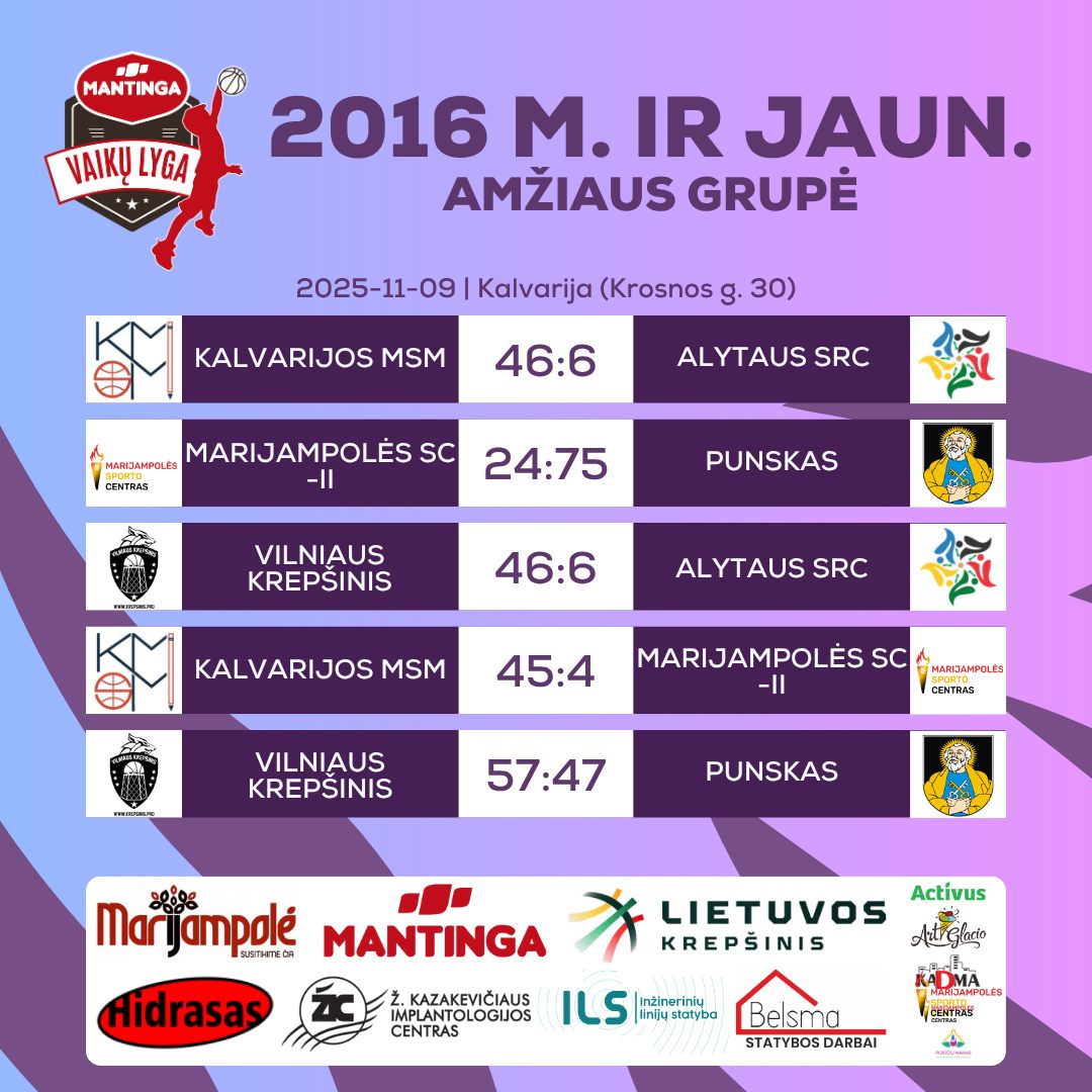 NajmÅ‚odsi koszykarze z PuÅ„ska w Kalwarii rozegrali już dwa mecze. Pokonali drużynÄ™ Mariampol komanda SC-II (75:24), a po wyrównanej walce ulegli zespoÅ‚owi Vilnius Basketball (47:57).