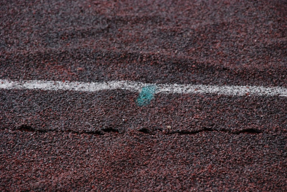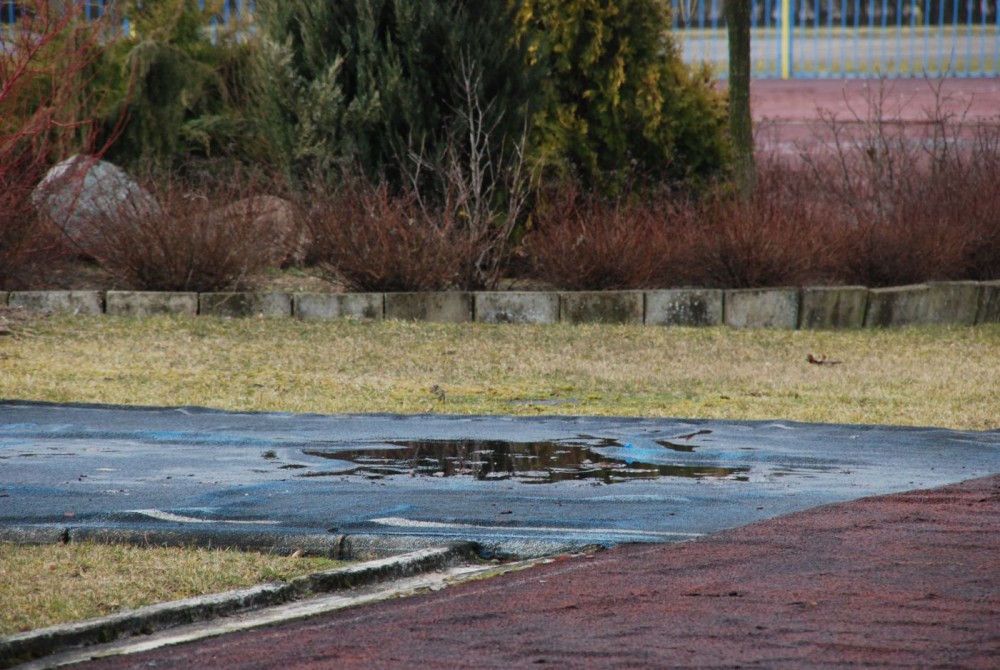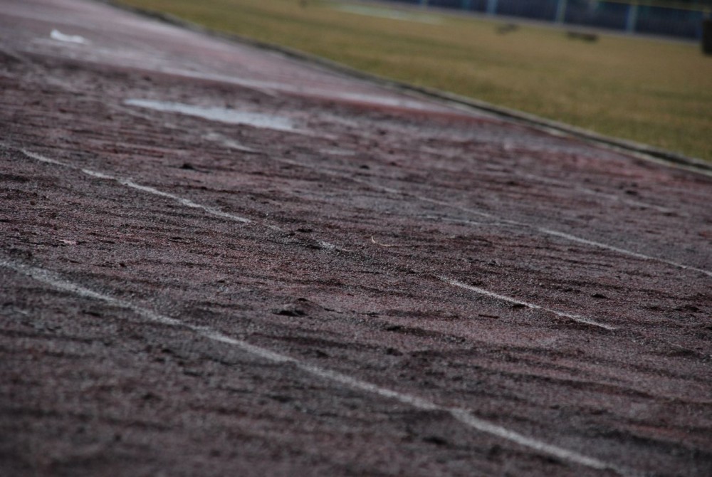 PopÄ™kana, pofalowana niczym polskie góry bieżnia z kaÅ‚użami nieco mniejszymi niż BaÅ‚tyk, z czarnymi plamami w miejscach gdzie niegdyÅ› byÅ‚ czerwony tartan, z obskurnÄ… budkÄ… przy wejÅ›ciu, brakiem miejsca na specjalistycznÄ… rozgrzewkÄ™. Stan dzisiejszy obiektu pokazujemy na zdjÄ™ciach.