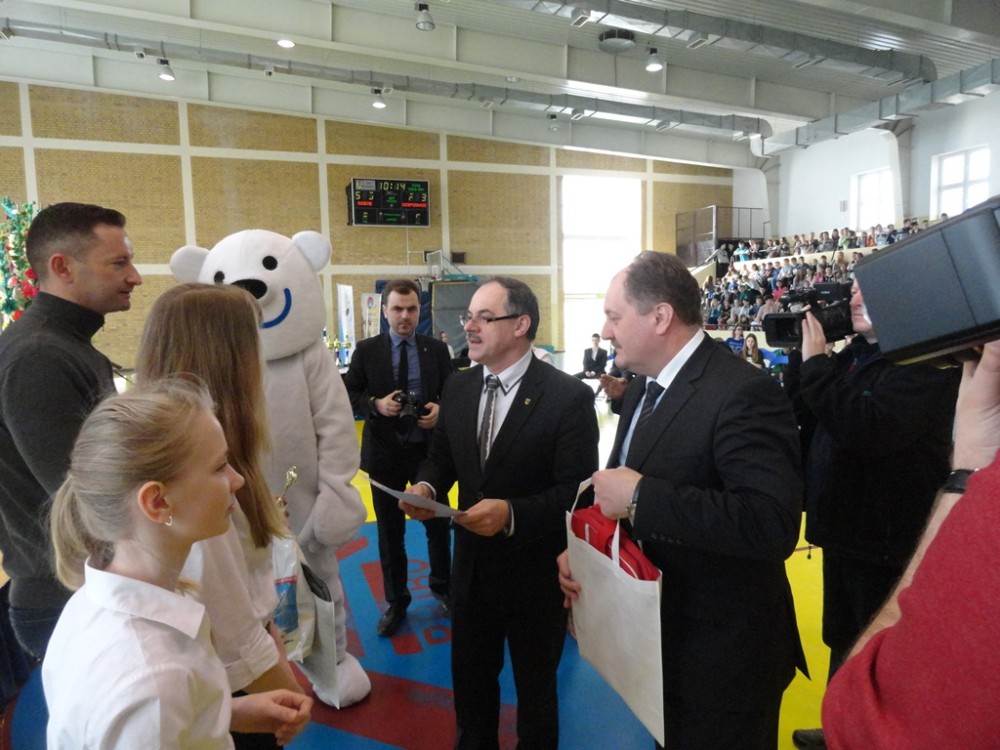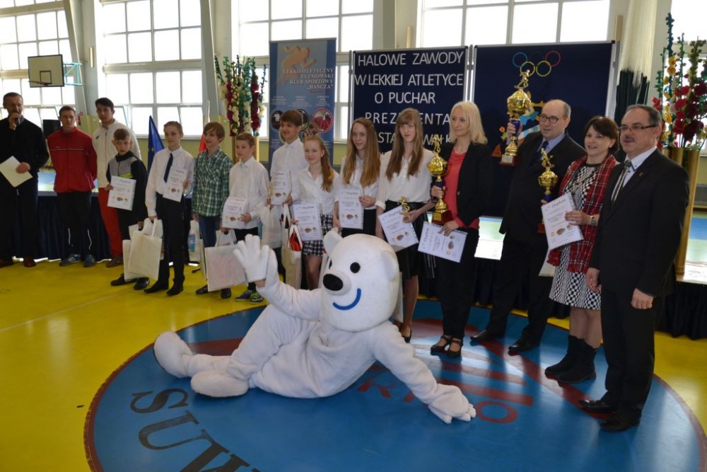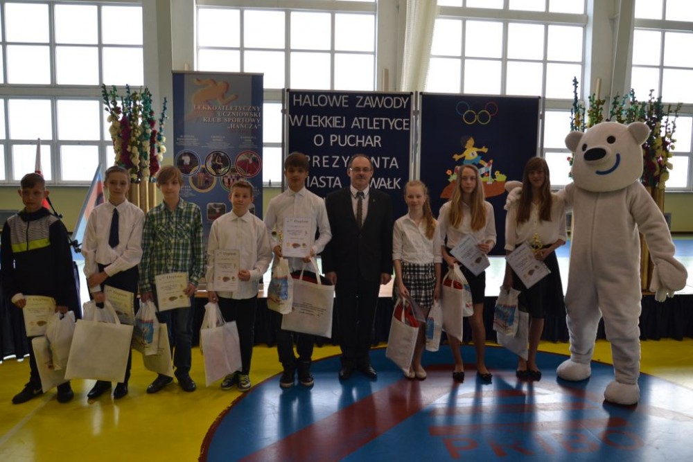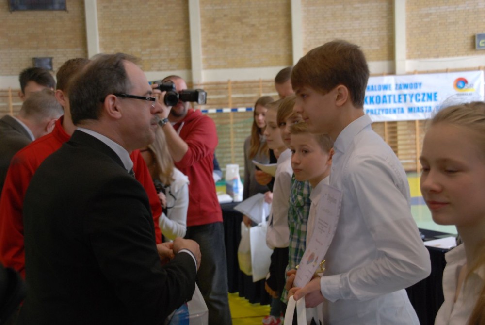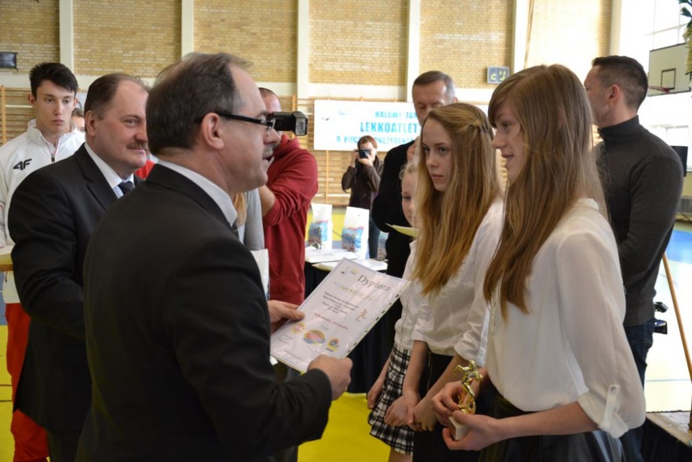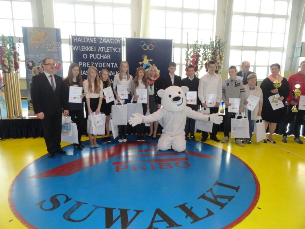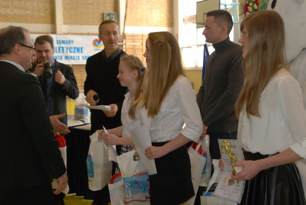 Gratulacje wszystkim uczestnikom zawodów, a startowali uczniowie z 11 podstawówek i 10 gimnazjów złożył Czesław Renkiewicz, prezydent Suwałk. W krótkim wystąpieniu potwierdził planowane na czerwiec rozpoczęcie modernizacji stadionu lekkoatletycznego oraz zapowiedź Piotra Zielińskiego, dyrektora ZS 3 otwarcia z dniem 1.09.2014 w szkole podstawowej klasy IV sportowej o profilu l.a. Testy trzecioklasistów zainteresowanych nauką w klasie sportowej odbędę się w kwietniu.