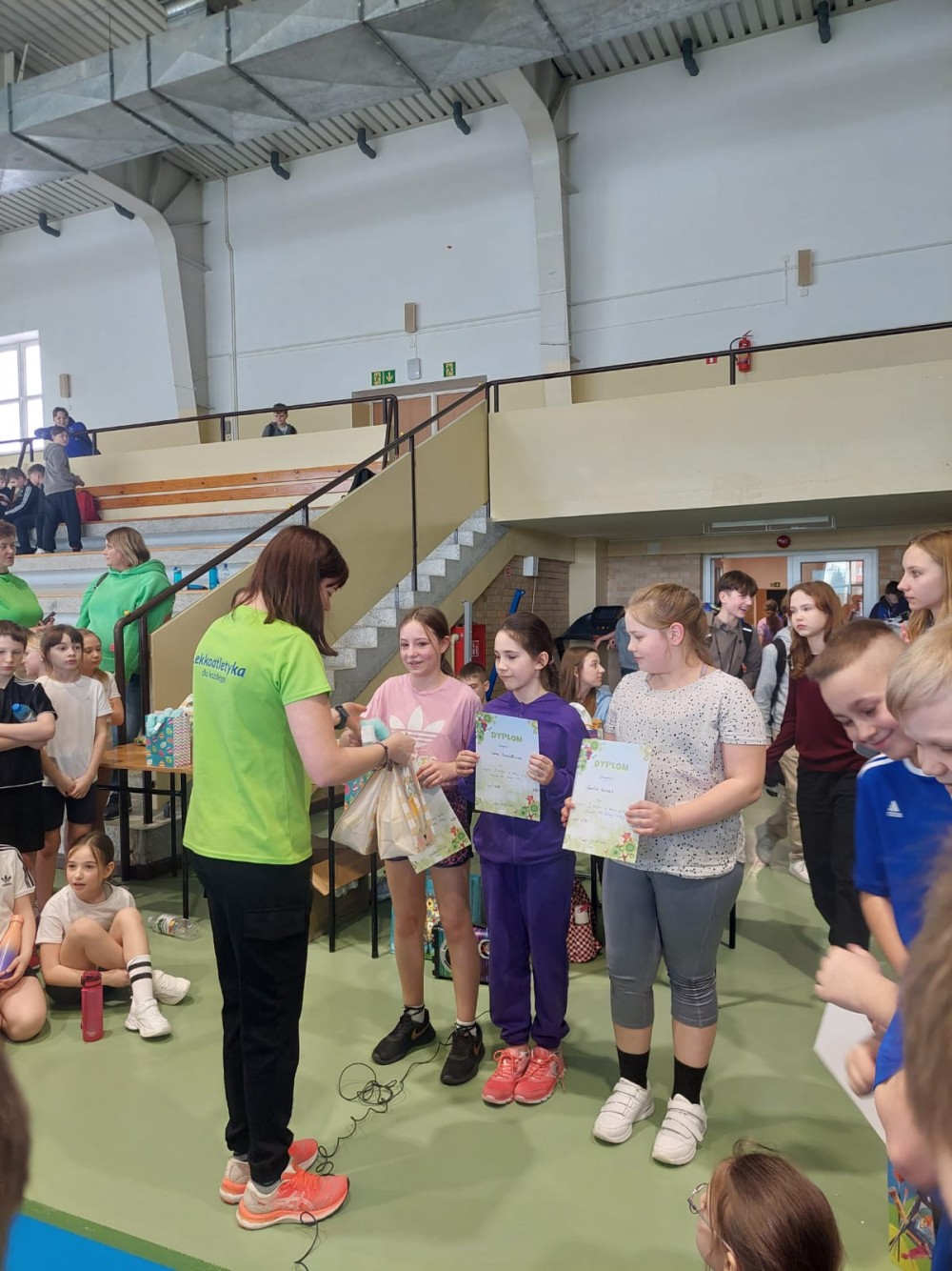 Bieg sztafetowy 10 x 20 m wygraÅ‚a SP2 – 1:41:46, przed SP11 – 1:42:90 i SP5 – 1:46:36.