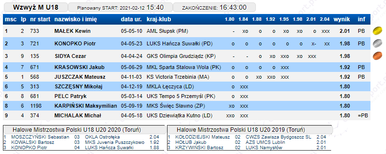 Pasjonujący konkurs, ktory został rozegrany w piątkowe popołudnie w Toruniu, można obejrzeć na kanale YouTube. Trenowany przez Jarosława Jutkiewicza suwalczanin za pierwszym podejściem pokonywał poprzeczkę zawieszoną na wysokości 180, 184, 188, 192 i 195 cm.