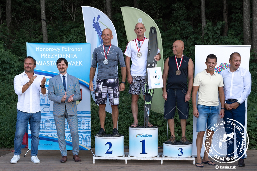 - Nasza młodzież dopiero się uczy, skoncentrowaliśmy sie na jednej konkurencji - slalomie - mówi Paweł Żuk, działacz i trener UKS Na-Wa. - Nasi szkoleniowcy, Mariusz Krzywicki i Adam Sadowski (na górnym zdjęciu) w Kategorii Senior wywalczyli złoto i brąz, a w rywalizacji do lat 15 po srebrny medal siegnęła Maja Żuk, która była również druga w Grand Prix Of Poland, a brąz zdobyl Emil Mikulski. Na sukcesy w kolejnych konkurencjach, a zarazem w trójkombinacji, musimy jeszcze zapracować.
