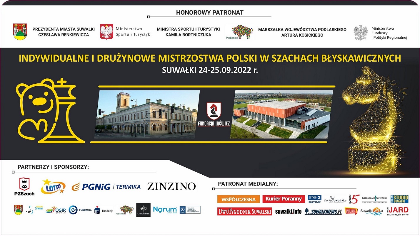 W niedzielÄ™ od godz. 10 do 14 rozegrane zostanÄ… Drużynowe Mistrzostwa Polski w Szachach BÅ‚yskawicznych. WÅ›ród 22 ekip w kategorii Open zobaczymy dwie drużyny HaÅ„czy i aż trzy Jaćwieży SuwaÅ‚ki.