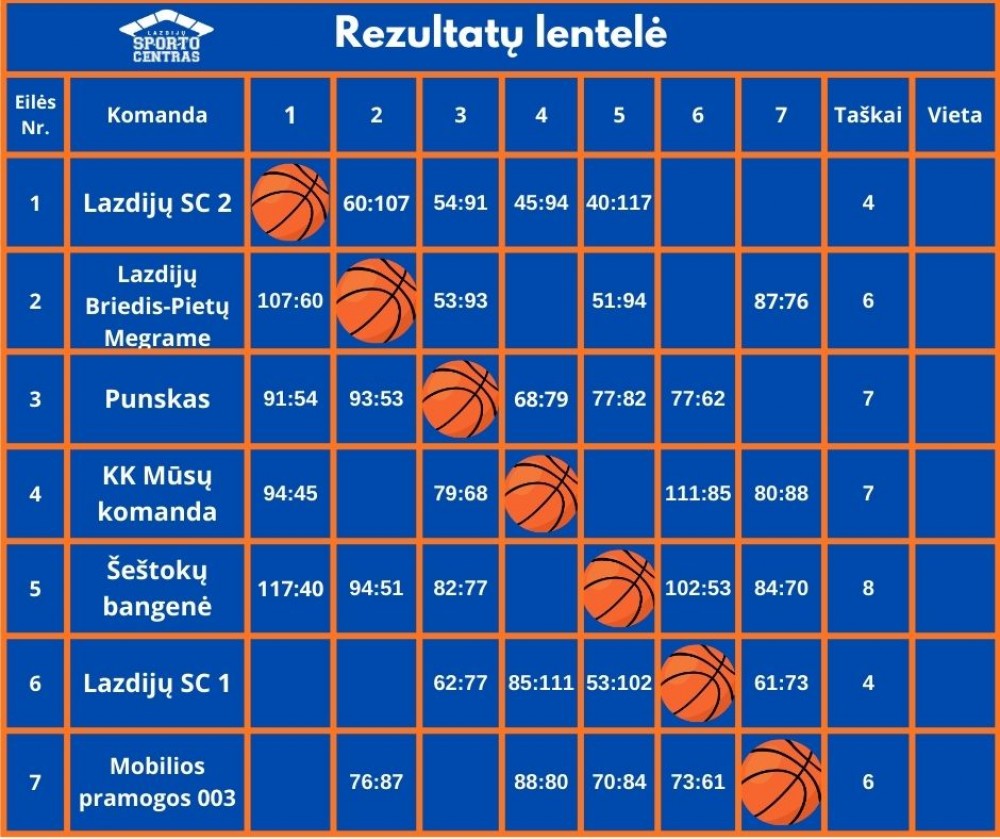Natomiast w otwartych mistrzostwach koszykówki rejonu łoździejskiego 2025/26, które odbyły się 9 stycznia w Šeštokų Bangenė po zaciętej walce pokonało zawodników z Puńska 82:77. Dla Puńska Dovydas Nometka zdobył 16 pkt, Arūnas Matulevičius rzucił 15, Rimas Liaukevičius 13 i Artūras Nevulis 11 punktów.