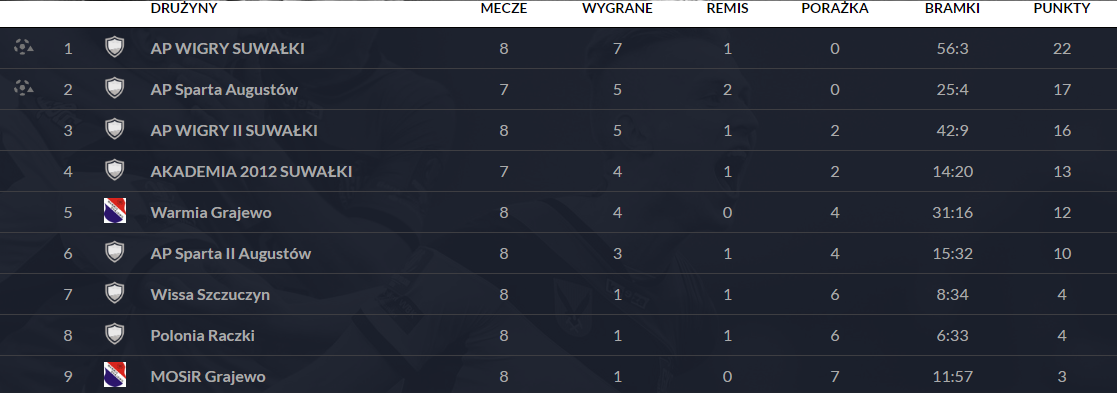 - Tabele mówiÄ… same za siebie – tak mÅ‚odzieżowe rozgrywki podsumowuje Kamil Makarewicz, prezes AP Wigry SuwaÅ‚ki. - W wiosennej rundzie finaÅ‚owej o mistrzostwo województwa rywalizować bÄ™dÄ… cztery nasze drużyny: pierwszy zespóÅ‚ w mÅ‚odzikach, dwa w orlikach i jedne w żakach. To ważne, ale jeszcze ważniejsze jest to, że smak sportowej rywalizacji poznaÅ‚o kilkuset naszych wychowanków. JeÅ›li ci mÅ‚odzi chÅ‚opcy dalej bÄ™dÄ… tak solidnie pracowali i robili takie postÄ™py, o przyszÅ‚ość Wigier możemy być spokojni. Talentów nie brakuje, trenerów mamy bardzo dobrych, warunki do pracy. Tylko tak trzymać.