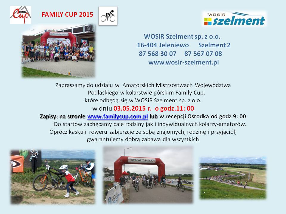 Zapisy od godz. 9:00 w recepcji WOSiR Szelment sp. z o.o. lub na stronie www.familycup.com.pl