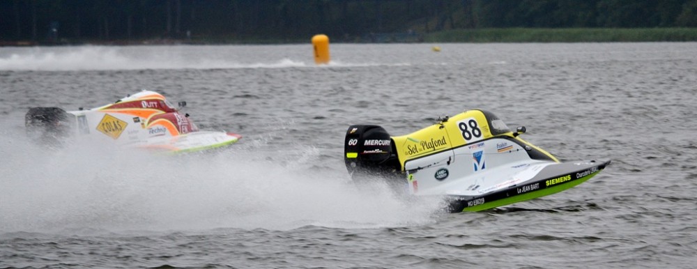 Rywalizacja o mistrzostwo świata odbywa się w trzech zawodach: pierwsze (wyścig 24-godzinny) rozegrano w Rouen (Francja), dwa następne na jez. Necko w Augustowie. To jedyne zawody w Polsce, w których stratują zawodnicy wodnej Formuły 1.